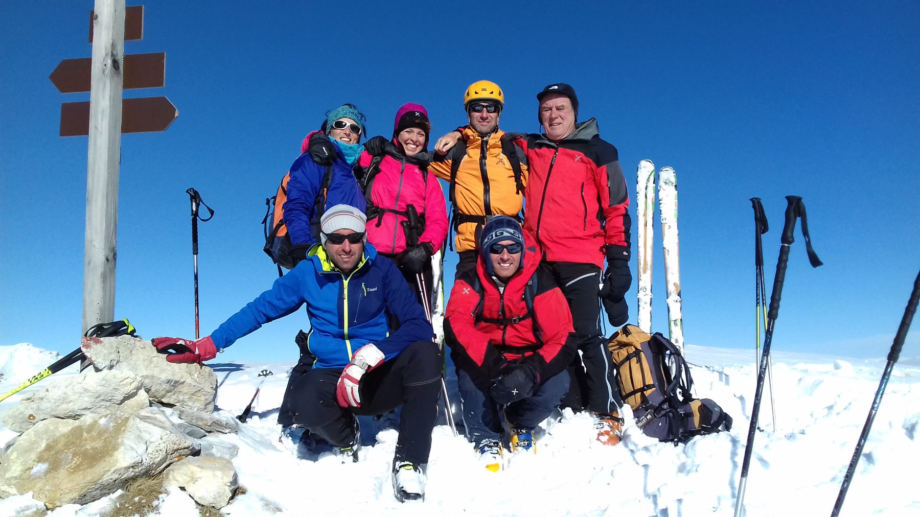 Prima parte di salita fatta sull’itinerario classico, poi per evitare il tratto centrale più ripido su pietre affioranti e rigagnoli non coperti, ci siamo tenuti a sinistra del vallone fino a sbucare sulla dorsale, da lì con un lungo traverso siamo rientrati nel classico vallone di risalita che abbiamo percorso mantenendoci a sinistra fino a sbucare sul colle e stando in cresta siamo arrivati in cima.