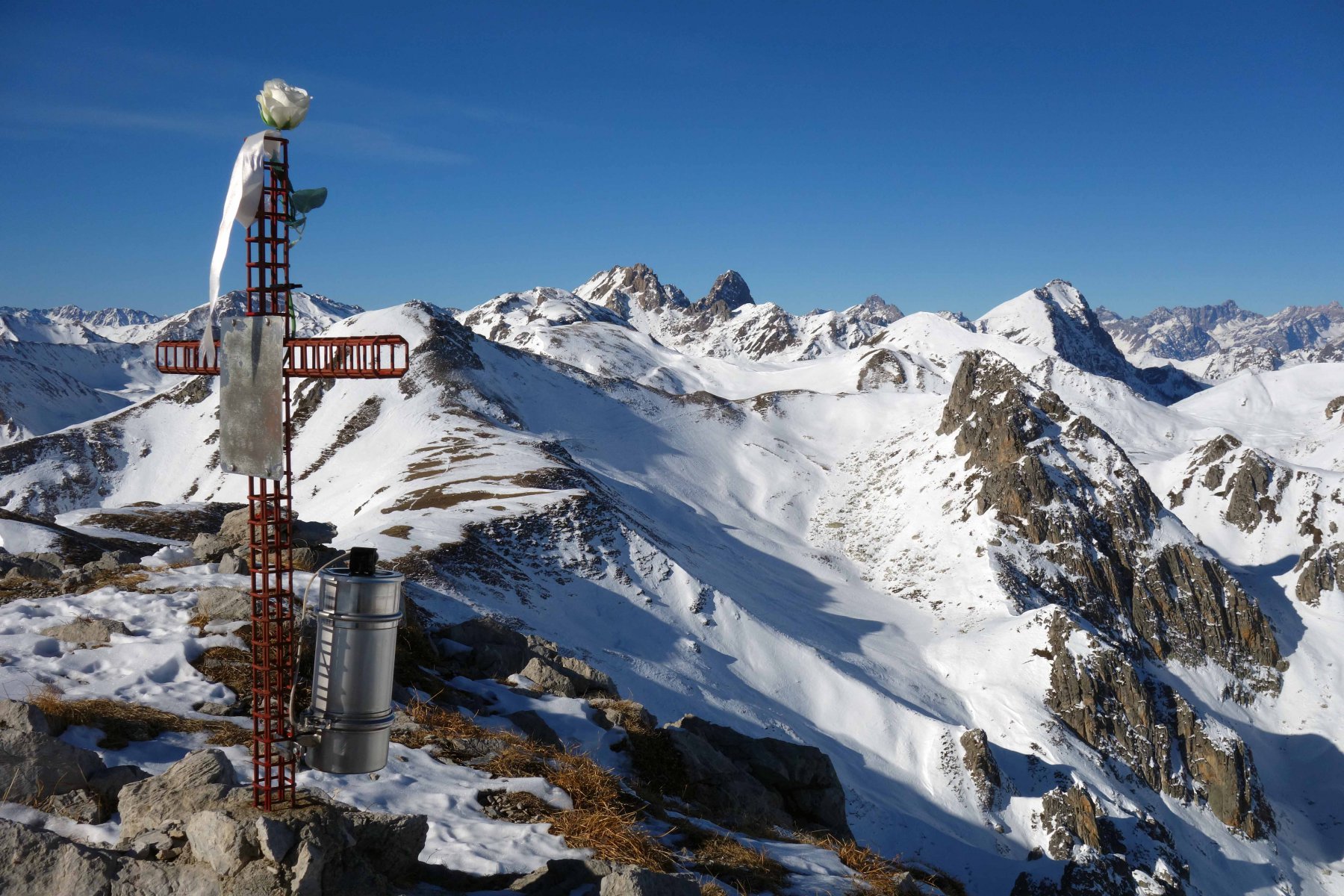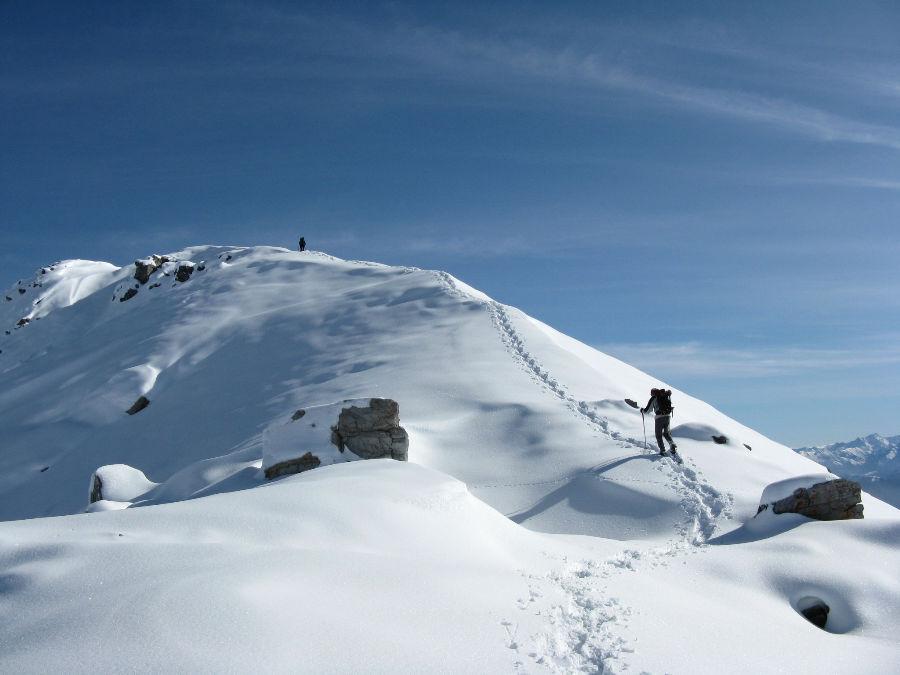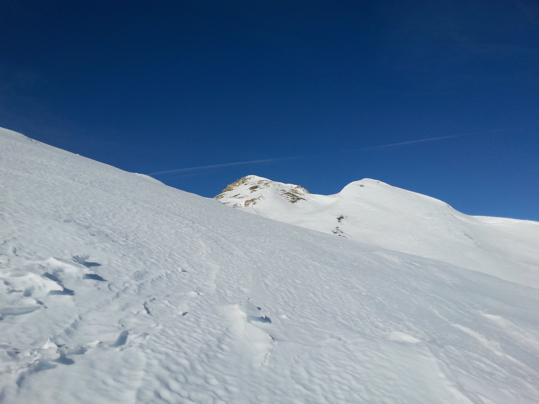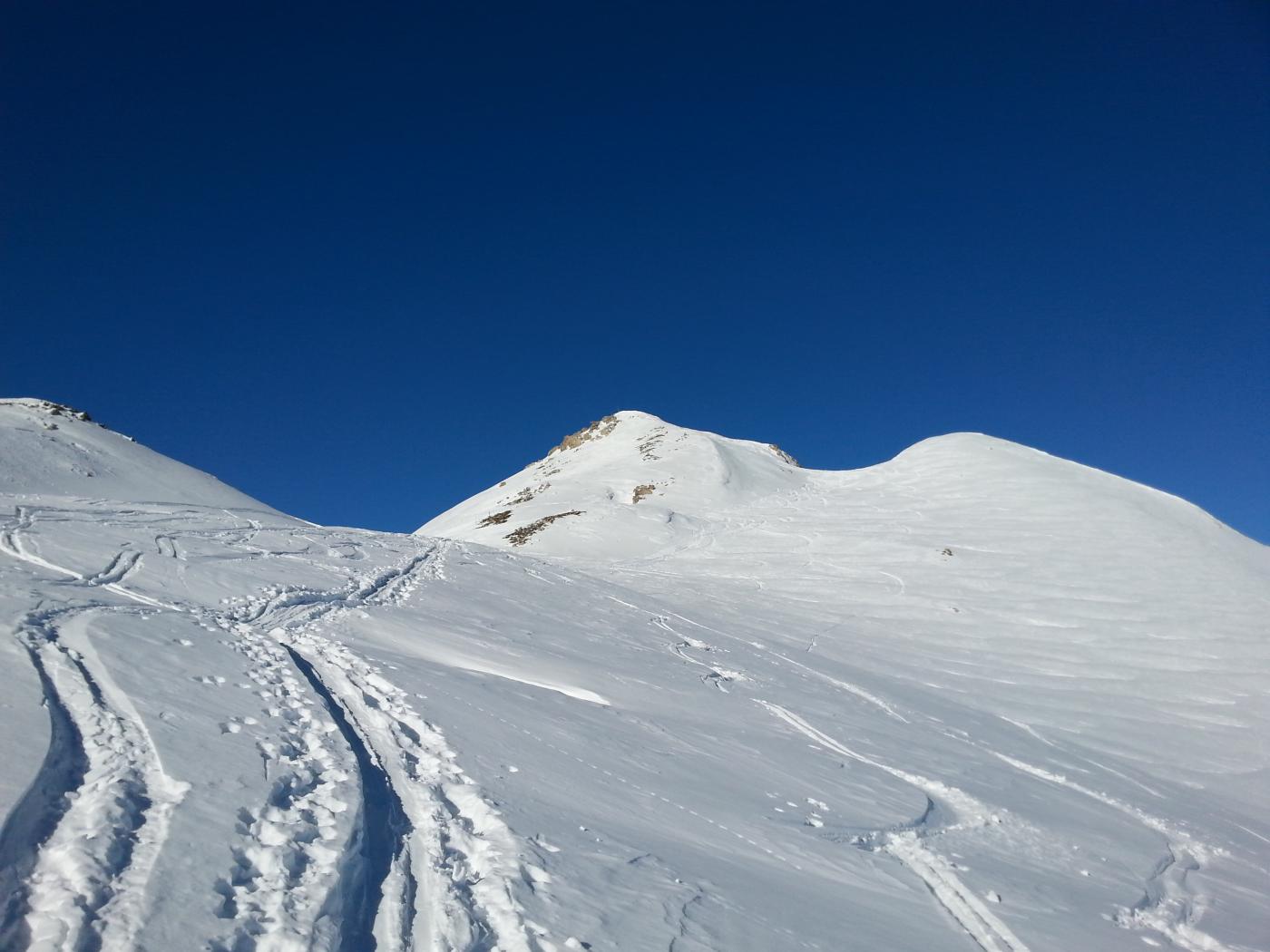 Dopo un breve falsopiano, si giunge alla base della rampa conclusiva sotto la cima. Si sale il crestone piuttosto ampio, aggirando le roccette del versante sud, e quindi sbucando sulla cresta a pochi metri dalla piccola croce di vetta.