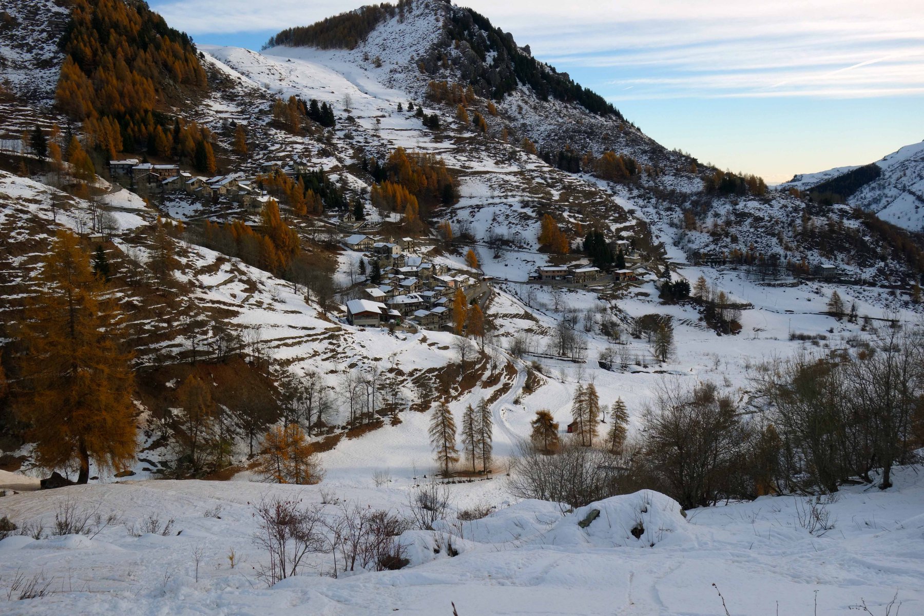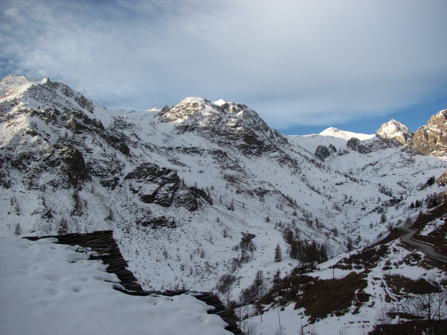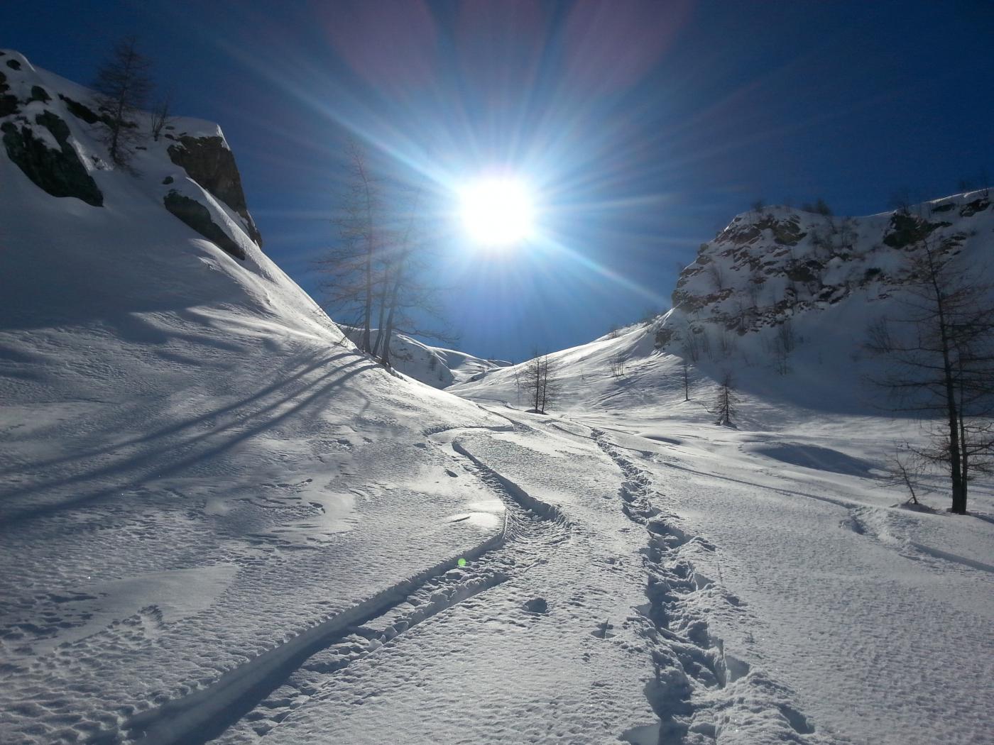 Si inizia a salire lungo il sentiero estivo (visibili le tacche di vernice) che dopo un breve traverso verso destra un po’ scomodo, risale fino ad un piccolo dosso, dove gradualmente si sale verso sinistra direttamente o con alcune diagonali tra alcuni larici fino a raggiungere un gradino roccioso che sembra sbarrare il vallone. Si può salire sia sul pendio di destra che su di quello di sinistra per evitare il gradino roccioso ed entrare nella parte intermedia del Vallone Inciastar.