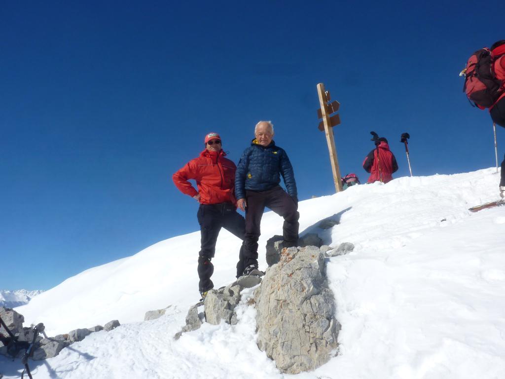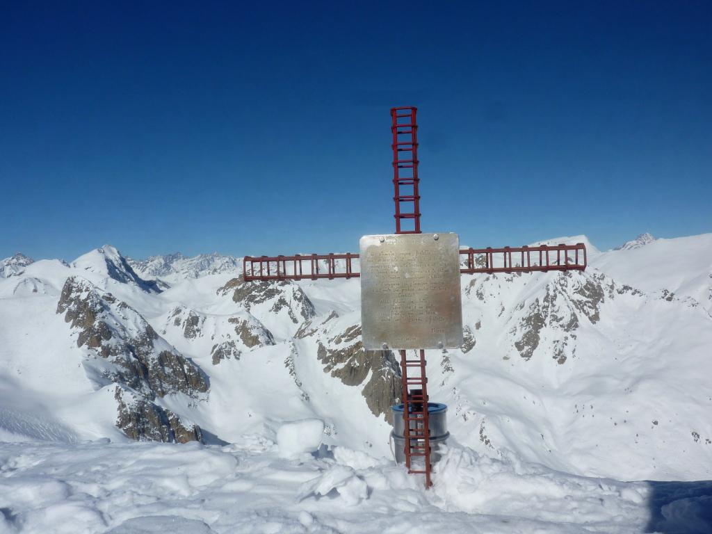 Oggi, beneficiando…non solo noi, delle tracce di PaneroChecco e soci di ieri, abbiamo potuto salire questa bella cima comodamente senza sfiancarci. L’età, e la gran quantità di neve, non ci avrebbero sicuramente permesso di fare un tale sforzo. Tutto l’itinerario sicuro, tranne che per un breve traverso nella parte centrale della salita.