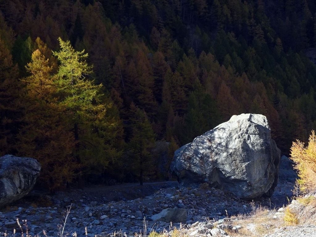 traversare il Guil riva sinistra orografica su pista forestale, esposta a NE, risalendo fino al villaggio di Ristolas (3,6km), attraversarlo e seguire la pista sul bordo del fiume, al km6,2 (1663m) la pista si allontana un po dal fiume. Dopo l’Echalp attraversare nuovamente su ponte (7,4km) seguire la strada riva destra orografica (che dopo lEchalp non e’ piu asfaltata) fino al park della Roche Ecroulee (1776m 10km) . Da qui obbligato e ripido fino a Lauzier ( Petit Belvedere vicino ), poi piu dolce e dominata dal MonViso.