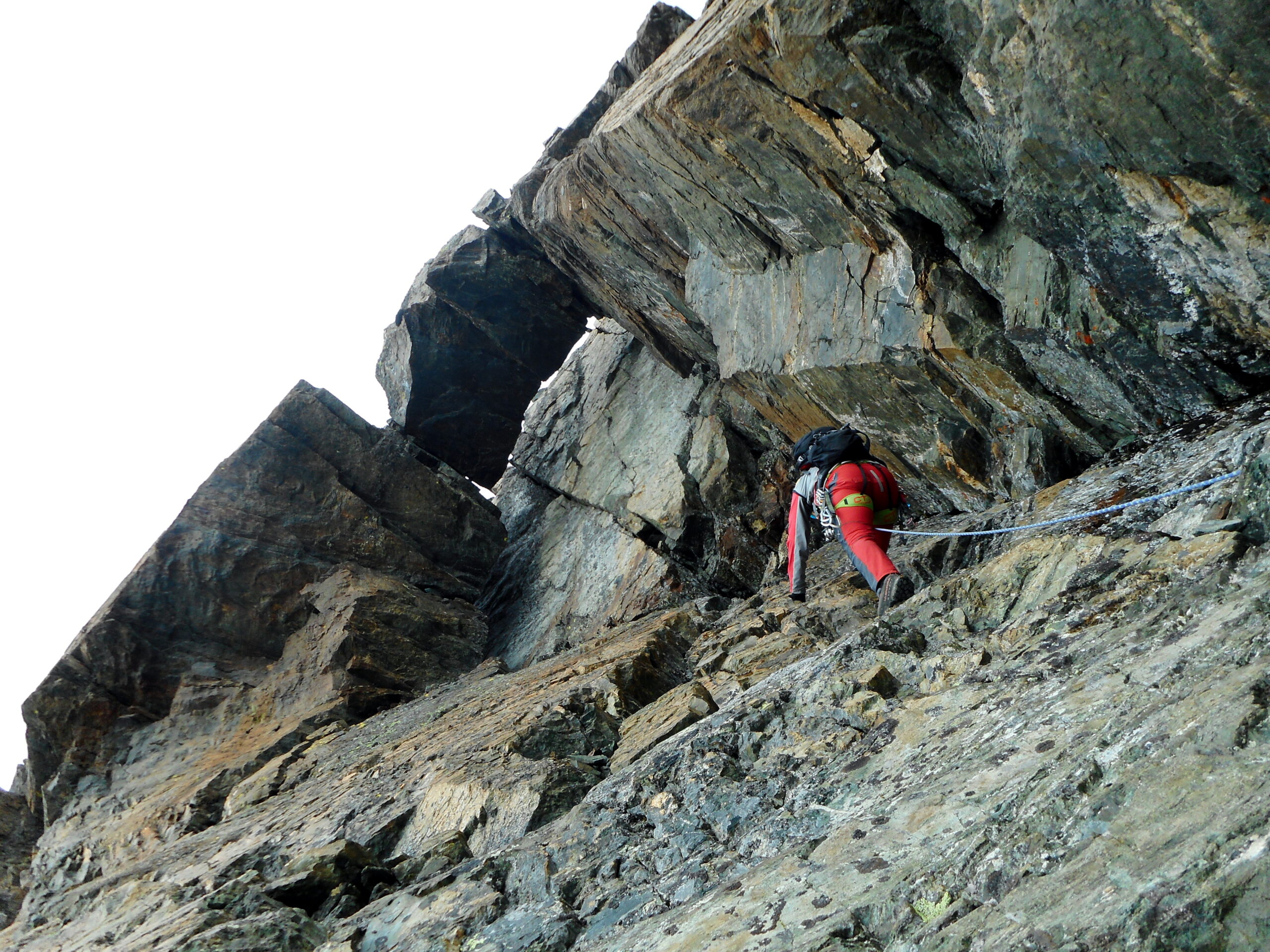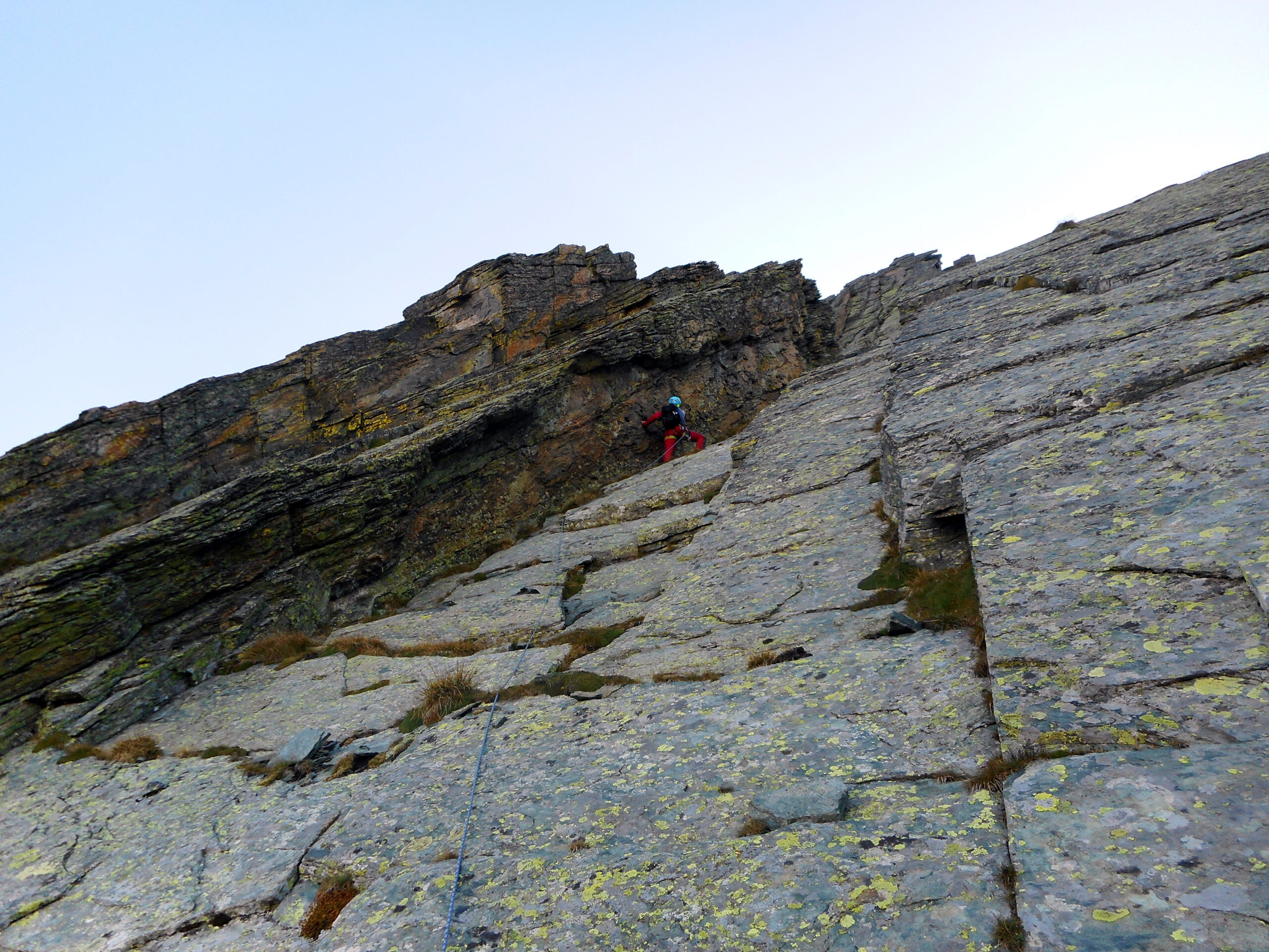 Condizioni meteo più che buone, con temperatura assai mite che non dispiace su un expo ovest nord ovest dove il sole arriva davvero poco e solo in tardissima mattinata, non avevamo i ramponi e per fortuna non sono serviti.