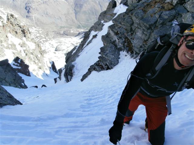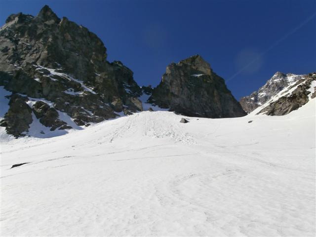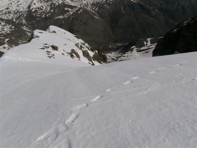 La valle Po è sempre magnifica, se poi trovi una giornata senza una nuvola e senza vento, se trovi un’ottimo rigelo che ti permette una progressione sicura e veloce….5 stelle!!!! Poche auto al park del pian della Regina (oltre ancora chiusa),temperatura fresca ma non fredda, neve continua all’altezza del lago Chiaretto (circa 2200) subito portante, poche tracce verso l’attacco del canale, ma non si può sbagliare: salita tranquilla senza intoppi, (solo noi su questo itinerario)per l’uscita prendiamo quello centrale e da qui sul facile crinale risalita fino alla vetta (libro di vetta completato in ogni angolo!). 15 minuti qualche foto e discesa verso il Quintino Sella per il pranzo: anche qui nessuno, ma proprio nessuno! Strano. Ritorno per la normale con neve ancora tutto sommato portante. Con le condizioni attuali indispensabili i ramponi x il canale.