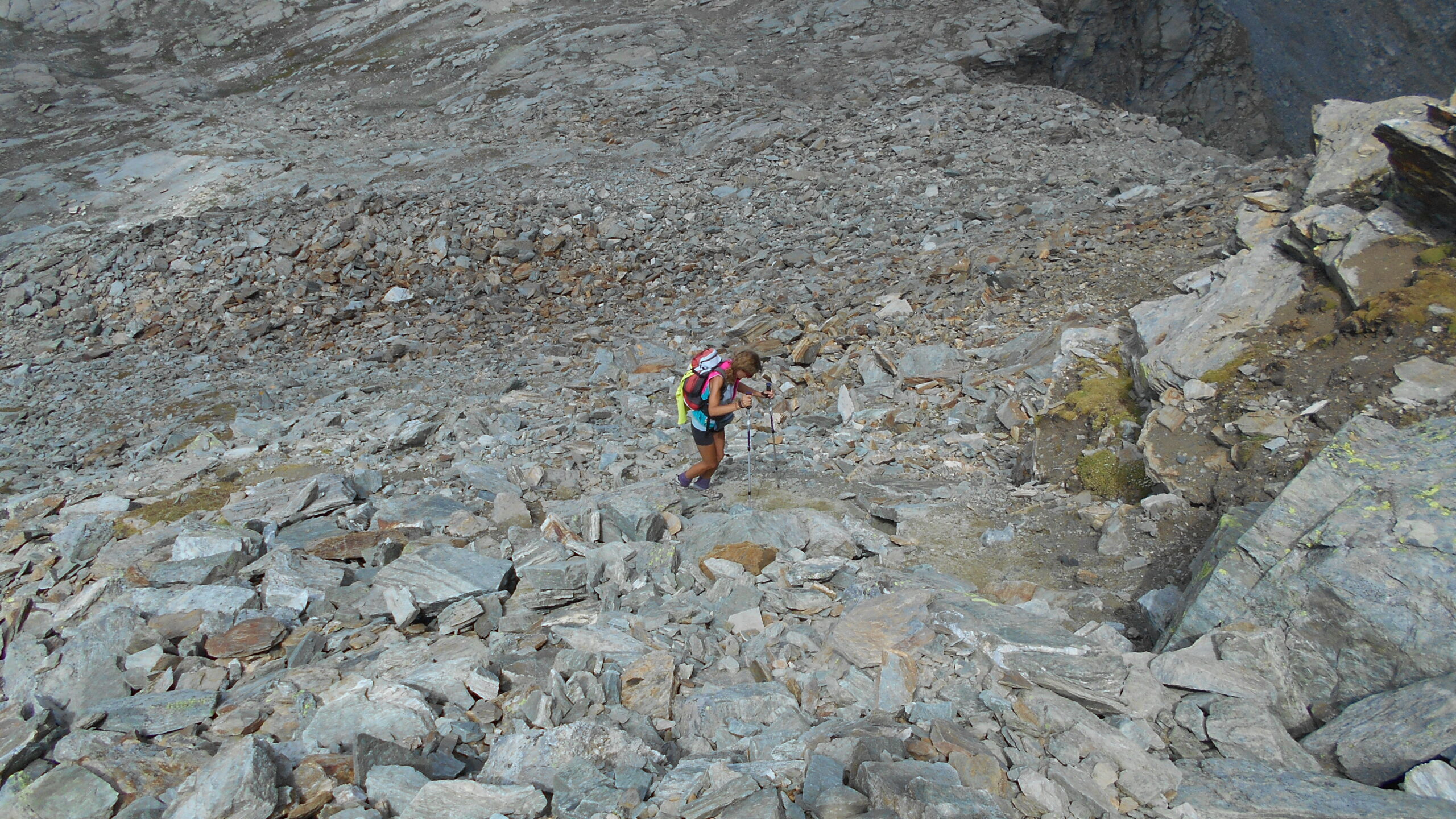 Al ritorno abbiamo completato la gita traversando la Punta Palasinaz con l’itinerario 3D /che pensavo si limitasse dal Colle Palasinaz al Corno Bussola, itinerario fatto più volte e anch’esso bellissimo).