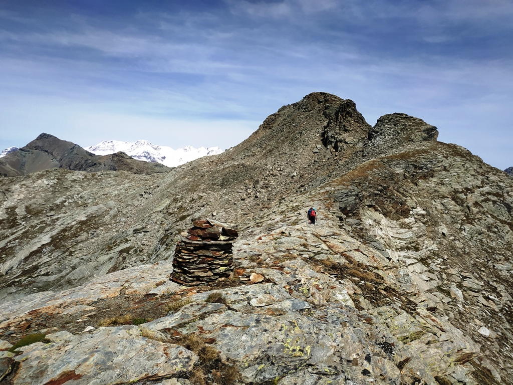 Per il maggiore dislivello e per le condizioni del percorso, la gita richiede un impegno quasi doppio rispetto alle salite classiche da Estoul ma permette di esplorare un vallone selvaggio, quello di Valfredda. Nella parte mediana del vallone ci sono 2 possibilità: la sinistra idrografica con traccia priva di bolli e la destra con molti bolli anche recenti ma erba più alta. Nella parte alta del vallone, in prossimità del passo, sono presenti numerosi stambecchi, per nulla impauriti dalla presenza umana. Se poi si decide di tagliare per il costone senza passare dal bivio con il sentiero 5B (bolli su masso), se ne vedono ancora di più. Provato le varie opzioni tra andata e ritorno. Panorama strepitoso dalla vetta, la mole imponente del Testa Grigia riesce a mala pena ad occultare una porzione molto ristretta della catena glaciale di confine, intorno alla vetta del Polluce. Finalmente i ghiacciai sono tornati belli bianchi dopo le recenti nevicate di fine agosto. Il punto più critico in cui occorre orientarsi credo sia intorno a quota 1900 poco sopra l’Alpenzu, dove è presente un albero caduto accanto ad una baita: aggirare recinto animali più avanti (filo) e poi invertire la marcia oppure salire dritto x dritto tra i rododendri a riprendere il sentiero sempre bollato, più facile a farsi che a dirsi, utile traccia GPS. Molti saliti dalla valle d’Ayas, nessuno da questa valle oltre l’Alpenzu.