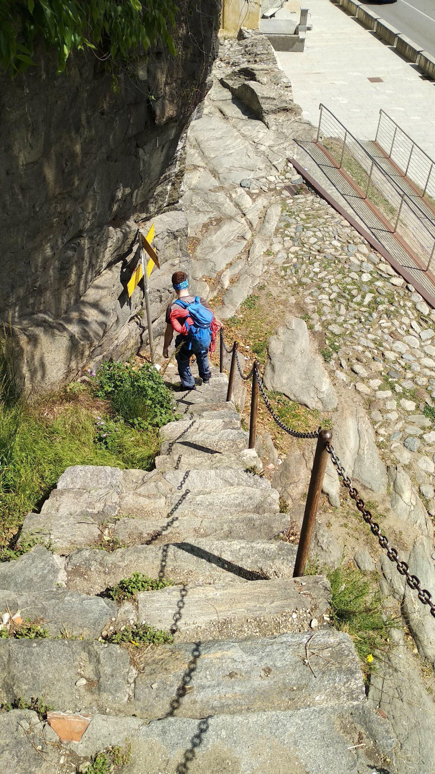 partiti dal parcheggio antiche industrie, dalla strada romana prendere la scalinata sentiero 6 , seguire indicazioni per la ferrata cartelli nuovi , noi abbiamo salito un breve tratto della ferrata 5 minuti , poi abbandonata e reperito sentiero ed in poco tempo raggiunto la falesia , fatto i tiri a destra dal 18 al 12 4b max 5c bellissime placche