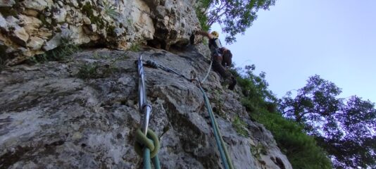Purtroppo ci sono parecchi punti con terra che non disturba nell’arrampicata……ma che fa si che crescano ciuffi di piante che invece vanno a nascondere i passaggi ( in uscita dal camino ho dovuto pulire non poco per passare ).