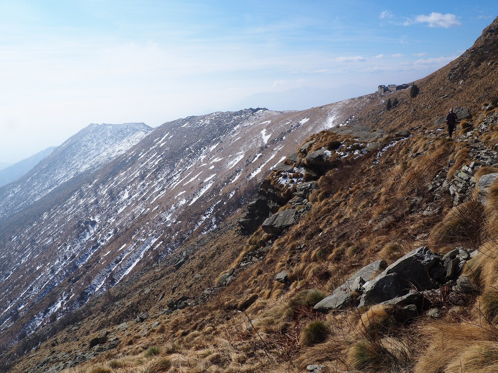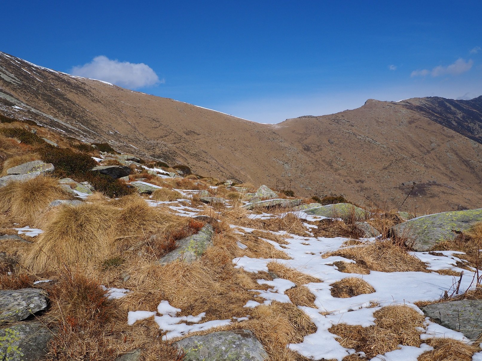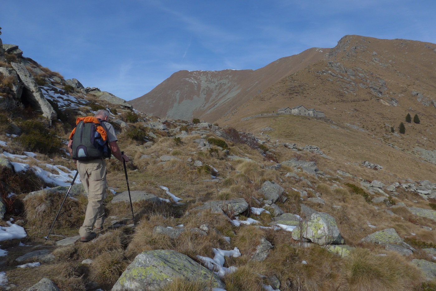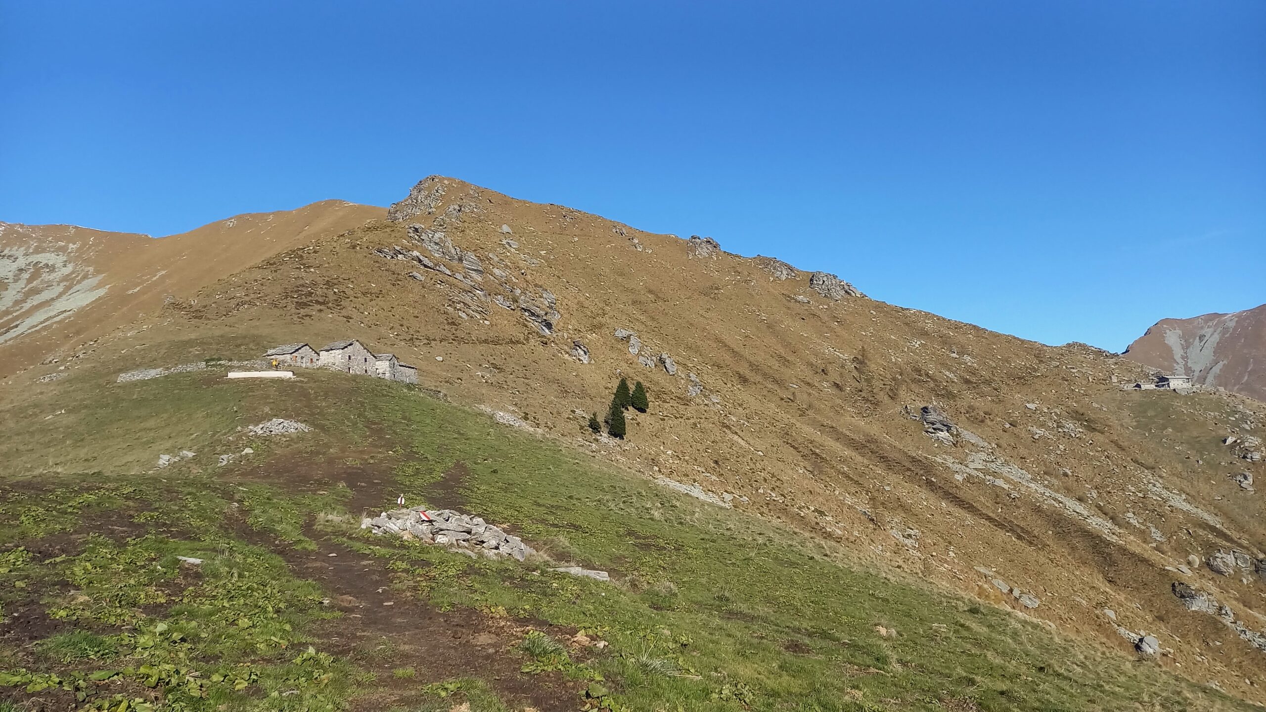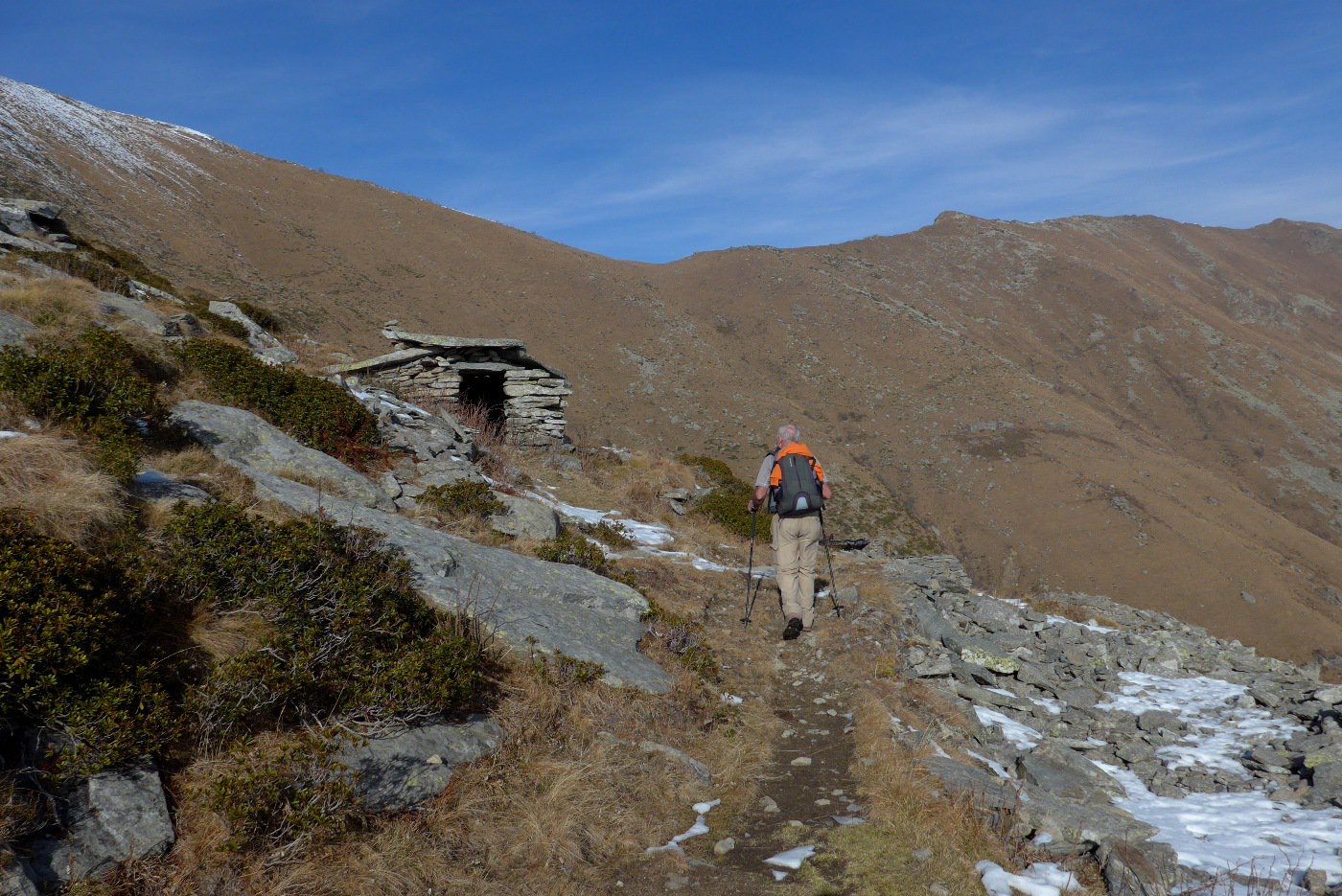Un’altra via la si può trovare dopo le prime baite diroccate, in prossimità di una sorgente. Qui a sinistra, indicata da un ometto, parte un’altro sentierino (traccia 3 rifugi) che sale a mezza costa , pervenendo forse più facilmente al colle .
