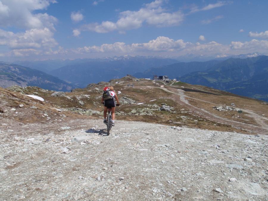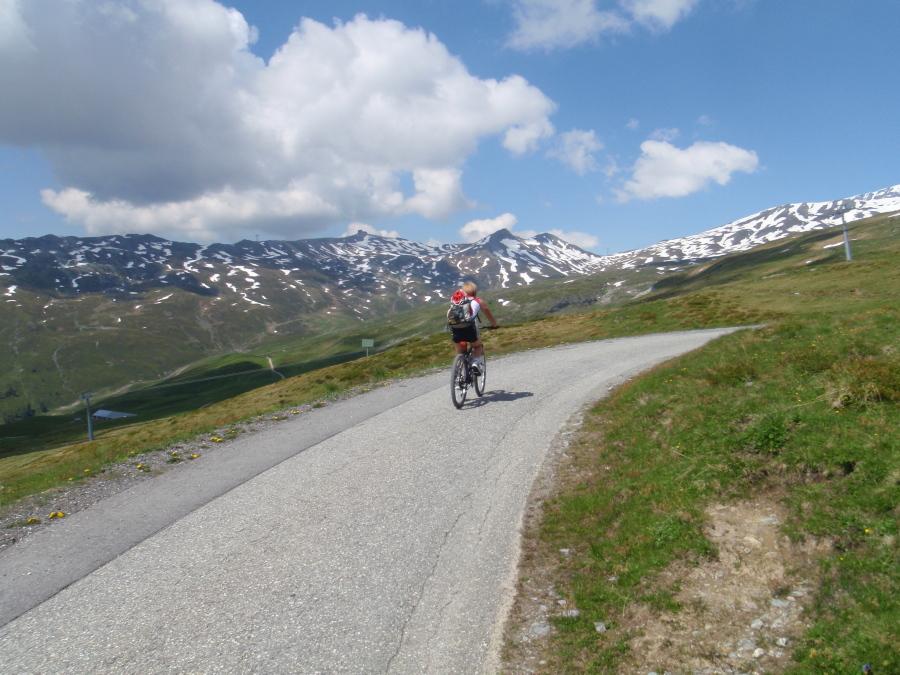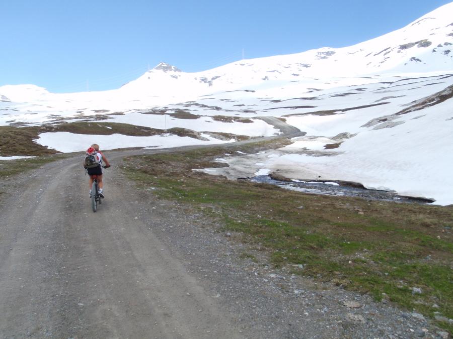Si ritorna per un breve tratto indietro, per poi abbandonare lo sterrato di salita approssimativamente a quota 2495 e proseguire la discesa lungo un tormentato e stretto sentiero. In parte segnalato, poi una volta arrivati sotto l’impianto sciatico, si scende alla bene e meglio seguendo questa linea diretta che porta proprio all’inizio della risalita dalla Fuorcla quota 2114 alla quota 2315. Giunti alla quota 2315, finisce tutto il tratto impegnativo e non rimane che la lunga discesa a valle. In questo caso viene riportato sulla traccia gps la traccia di discesa a valle lungo il largo facile sterrato che senza possibilità di errori riconduce direttamente a Laax. Se non si ha a disponibilità il gps, si scende prima all’impianto a monte di Crap Sogn Gion, poi a Curnius passando prima nei pressi del lago Falerin, per poi scendere a Falera e da qui si arriva direttamente al laghetto di Laax.