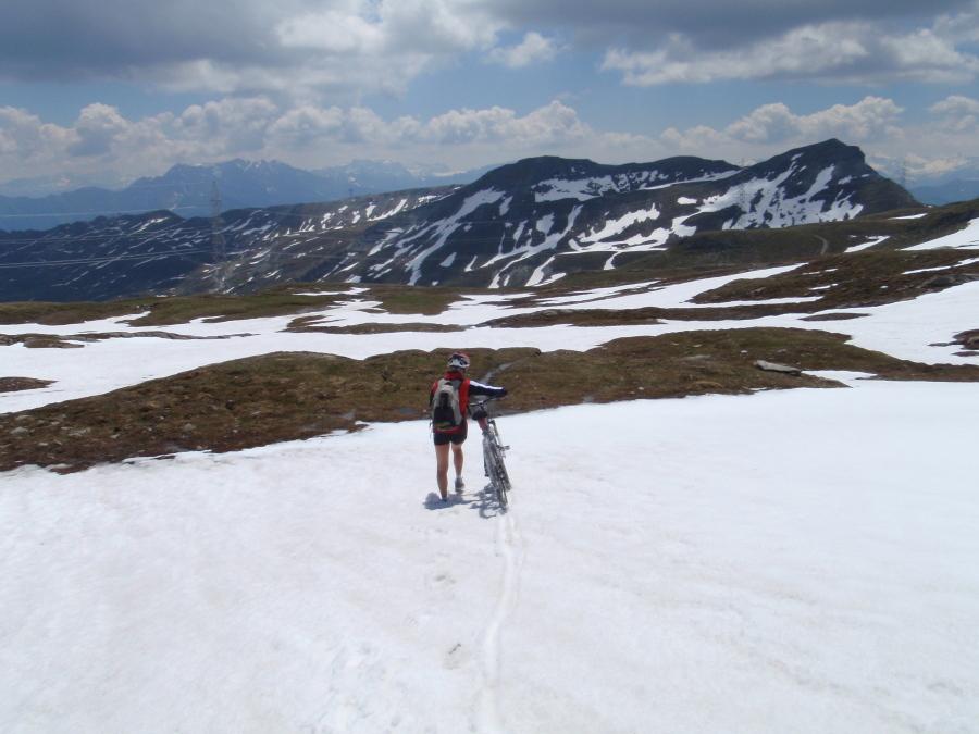 ( attenzione! ancora in paese, prima di questa mulattiera, se si piega alla destra si arriva a Zunei, lungo una stradina più semplice e meno impegnativa.) Guinti in questa località, proseguire per l’unica larga strada asfaltata che conduce direttamente agli alpeggi in quota. Giunti a quota 2127 nei pressi di Camona da Nagiens si piega a sinistra e su sterrato si da inizio ad un lungo ed infinito traverso che conduce senza possibilità di errori fino al Vorab Gletschr 2566.