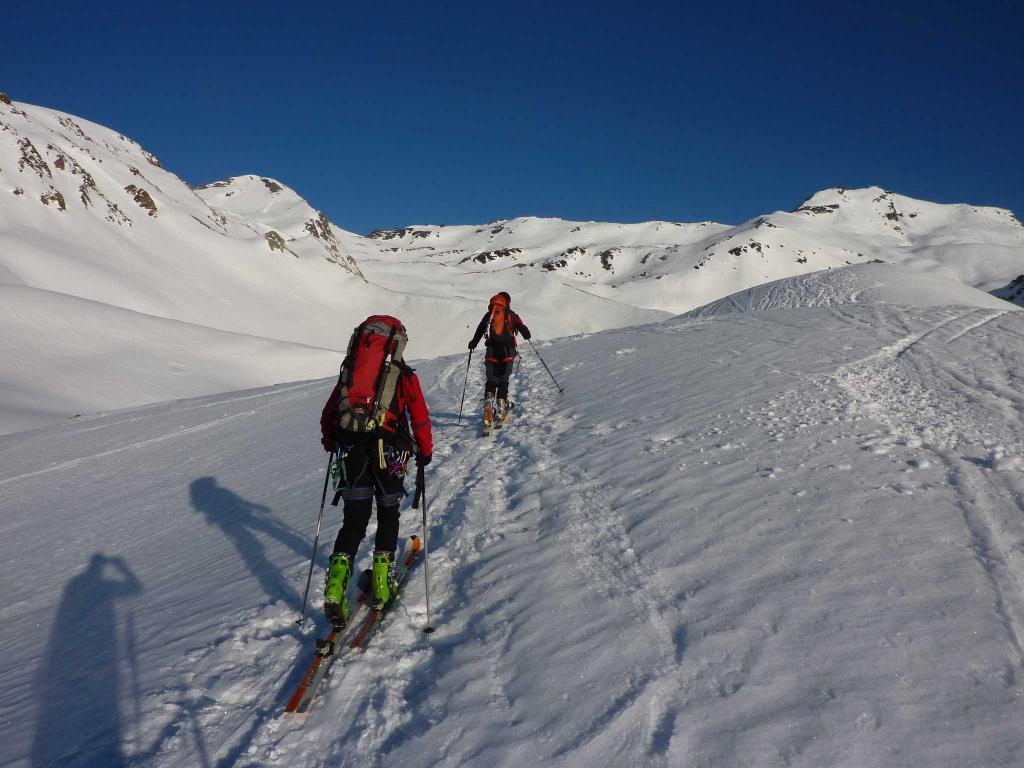 In discesa abbiamo trovato neve polverosa dalla vetta sino a circa 3000 m, in seguito e nella parte finale, terrificante crosta indomabile.