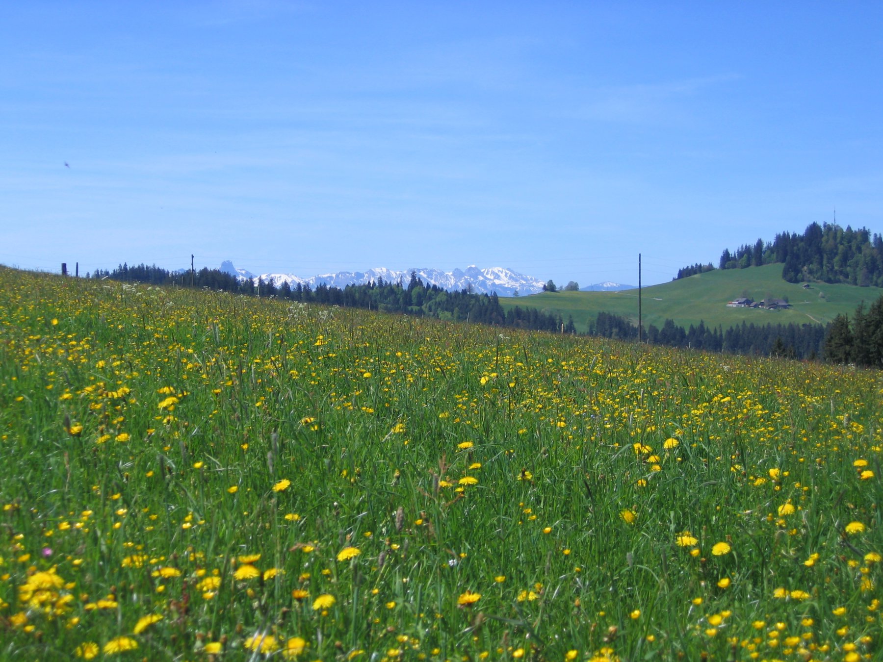 Dalla stazione di Trubschachen reperire il primo indicatore del sentiero 65, che attraversa il torrente e inizia ad innalzarsi tra prati e boschi. Si giunge ad un primo alpeggio dove il sentiero volta a destra (passare dietro la casa) e presto si trasforma in strada sterrata, poi di nuovo in sentiero e risale tra pascoli. Arrivati alla strada asfaltata la si segue per lungo tratto sul crinale, sino a quando, dopo un ulteriore alpeggio (Unter hauenen), il sentiero si stacca sulla sinistra, risalendo il fianco di una collina. Continuando a seguire il sentiero si giunge al punto panoramico di Pfyffer (1315m), da cui si scorge gia’ l’imponente mole delle montagne che sovrastano la valle di Marbach, la Hohgant e la Hangst.