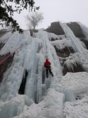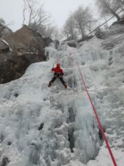 Dopo i danni dell’ alluvione dello scorso anno, solo alcune linee del lato destro sono scalabili, oggi il tempo era molto umido, due gradi sotto lo zero, freddo ma ben sopportabile.