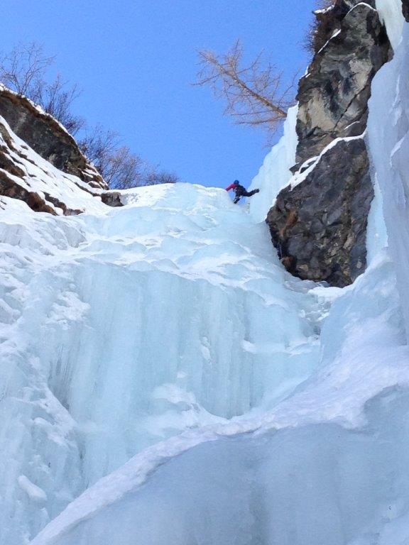 Con Roberto, Massimo e Tatu. Condizioni al limite. Qualche scarica. La seconda sosta è il punto più pericoloso per le scariche. Conviene andare alla sosta appena poco più su, a sx, alla base del muro. L’ultimo tiro, se non si scende a piedi, conviene saltarlo.