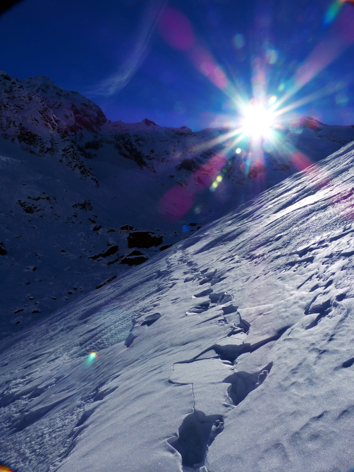 Salita praticamente senza incontrare nessuno, saluti a un paio di sci-alp che mi hanno superato durante la salita, e in discesa incontrati un paio di ragazzi poco dopo la morena.