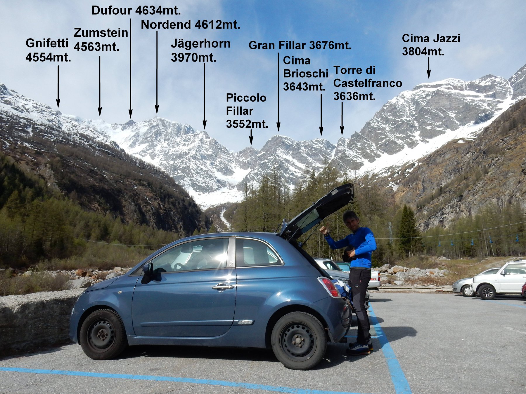 Gita ormai al capolinea,ciaspole utilizzate da 1900mt. in su.Ambiente con panorama sull’enorme parete di ben 2400mt. della nord-est del M.Rosa da 5 stelle. Trasferta piemontese turbolenta, partiamo da BG per il Passo del Sempione con la speranza di trovare due posti per dormire per la notte all’ospizio del Sempione per la salita il giorno dopo al Breithorn. La speranza si vanifica subito da un perentorio no di un frate,causa posti esauriti. Come ripiego visto anche il forte vento che tirava,abbandoniamo il Passo del Sempione e scendendo in Val d’Ossola buttiamo la freccia a dx ed entrando in Val Anzasca puntiamo verso Macugnaga dove rimediamo la giornata salendo al facile itinerario che conduce al Rif.Zamboni Zappa. Gita pre pasquale ormai classica effettuata con l’amico Nicolas. Per gli interessati nella zona si disputava la Rosa SKIraid vinta da il fortissimo Damiano Lenzi.