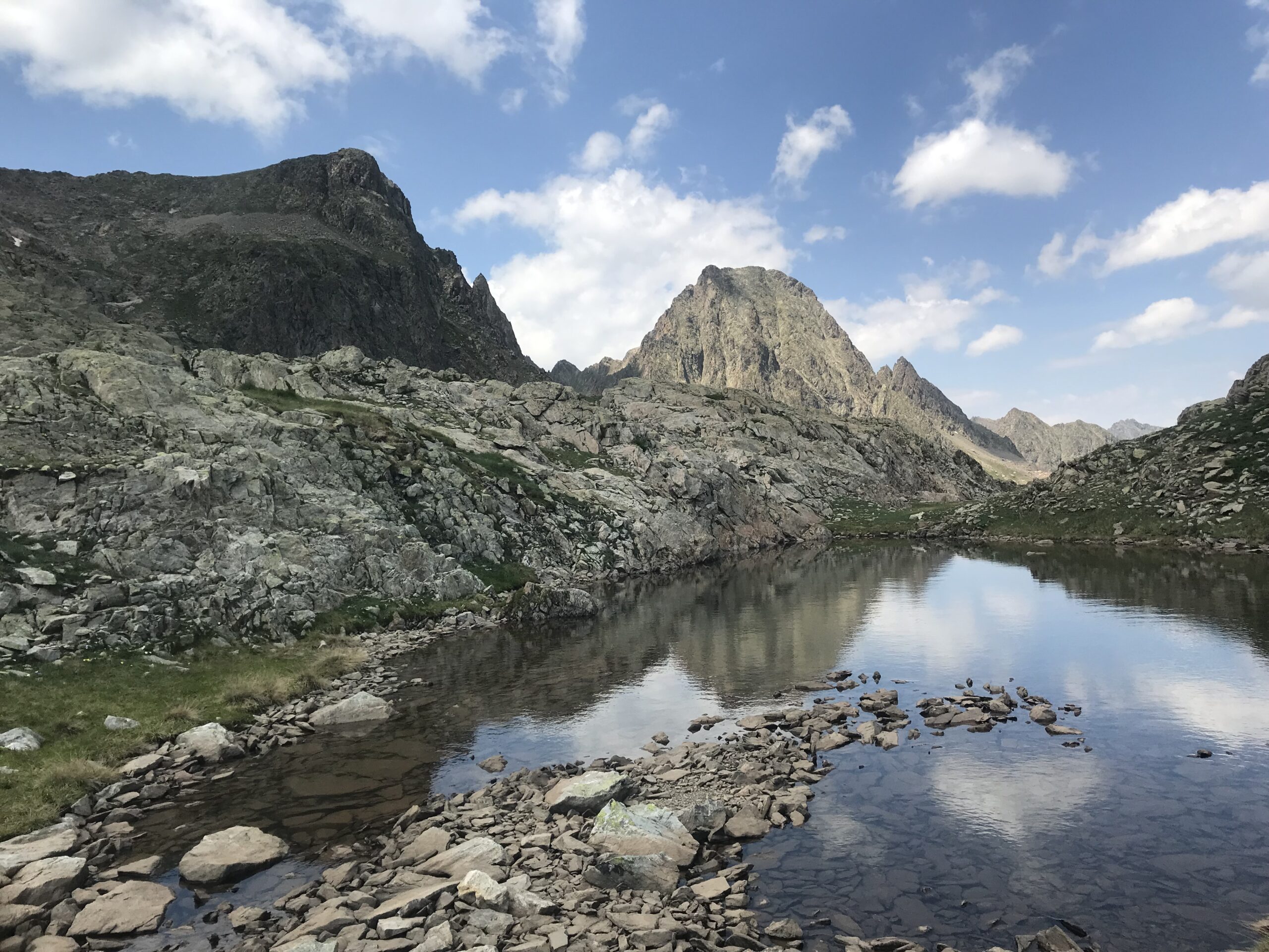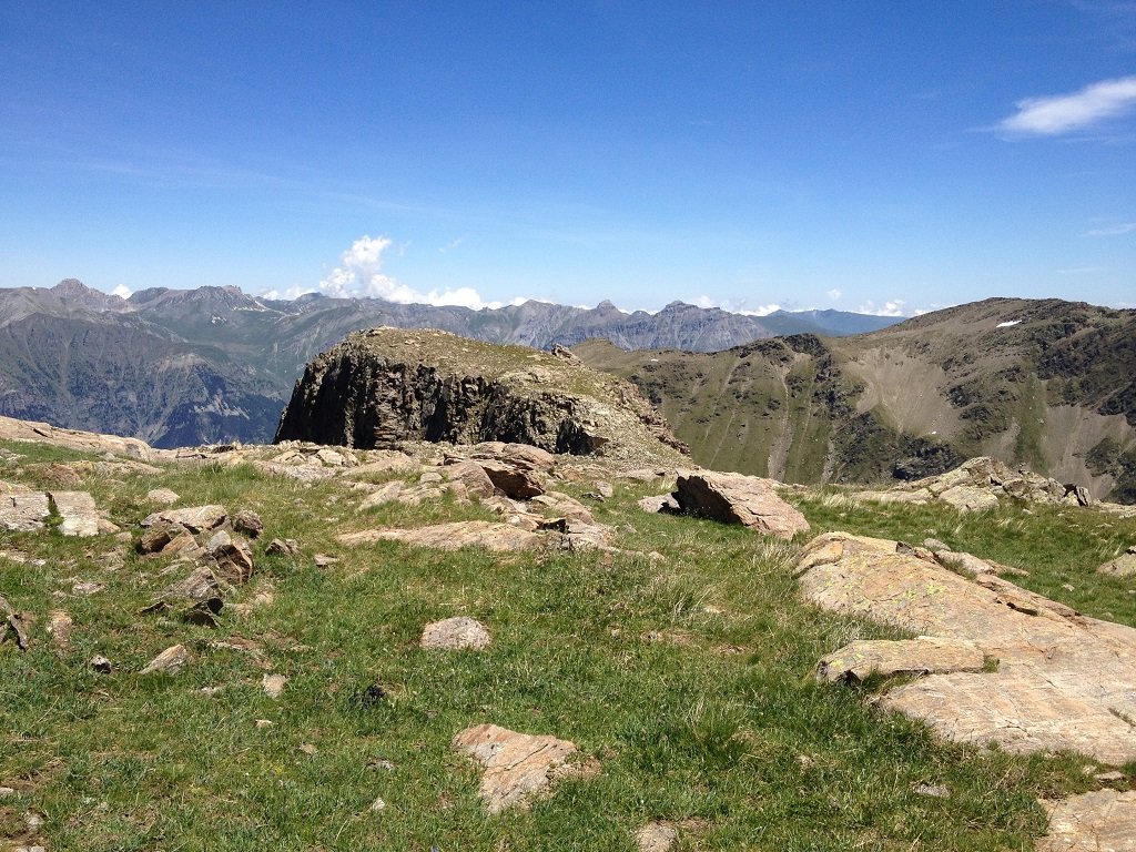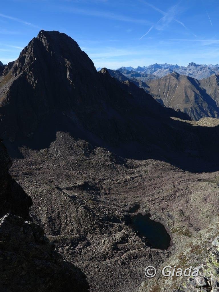 Da questo punto si prosegue senza sentiero in un ambiente suggestivo fatto di rocce montonate erba, roccette e numerosi piccoli specchi d’acqua, senza incontrare difficoltà si raggiunge la base della cima nord di Schiantalà da dove è visibile la croce di vetta da raggiungere. Sul percorso si incontra un piccolo meraviglioso laghetto poi si gira a dx compiendo un percorso quasi pianeggiante fino alla cima; per il ritorno stessa via.