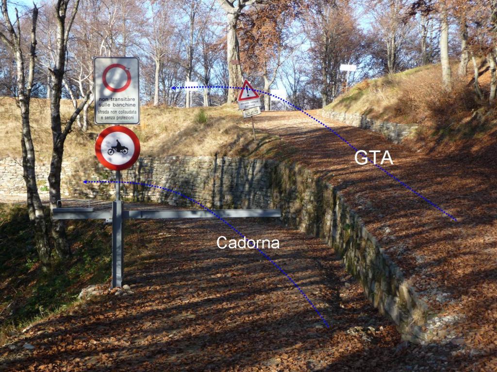 Per chi come me arriva dalla pianura, dall’uscita di Stresa contare 45 minuti minimo su strade strette, con autovelox fissi (30-50 km/h di limite). Il parcheggio al Colle è piuttosto piccolo e la strada sterrata era sbarrata da una catena e più avanti da due mezzi, quindi non arrivare troppo tardi. Dal parcheggio si segue la sterrata, ora in corso di risistemazione in diversi punti, fino ad un bivio (foto), i segni bianco rossi ed i cartelli portano a sinistra su una strada ad est della cresta del Monte Bavarione, nel bosco; mentre la strada Cadorna prosegue sulla destra sul versante al sole. Entrambe portano al Colle Folungo da cui si può continuare sulla strada con itinerario leggermente più lungo ma riposante, oppure seguire i segni che risalgono la cresta. In entrambi i casi si raggiunge il bivacco del Pian Vadà, da dove il sentiero prosegue verso la cresta finale del Monte Zeda che si raggiunge in breve seguendo gli evidenti segni bianco-rossi