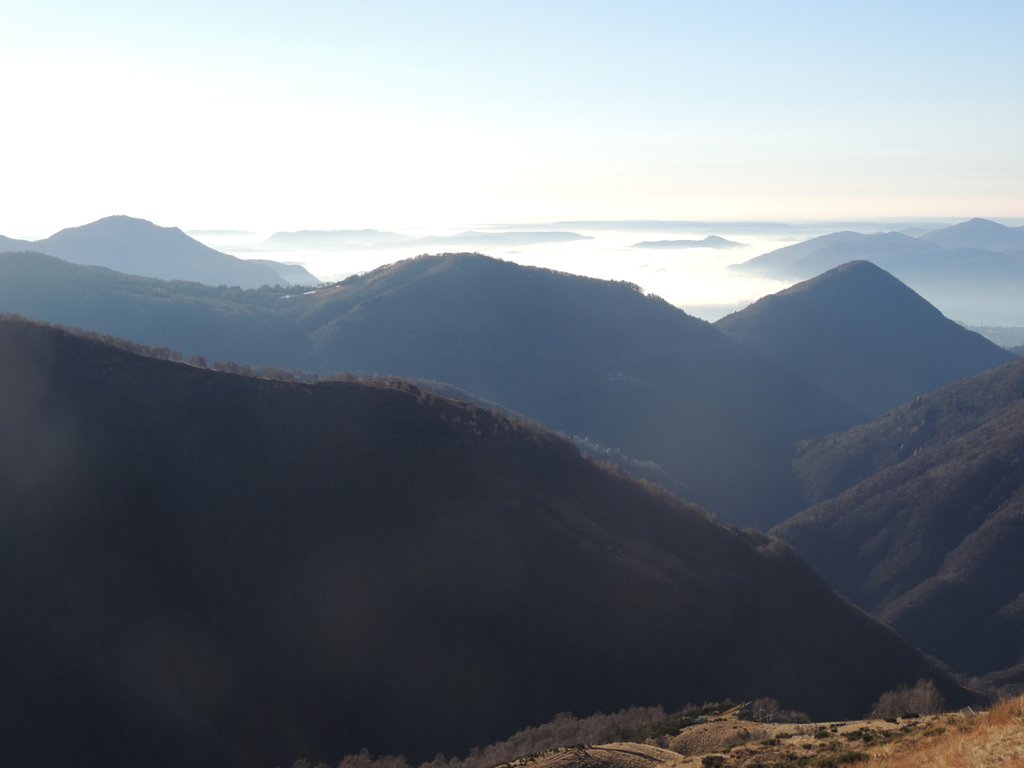Partiti dal Pian Puzzo ( e vista anche qui una Jaguar…), si sale senza difficoltà seguendo la strada e poi le scorciatoie (segni bianchi e rossi , talvolta vecchi rossi e gialli). Niente neve, vista incredibile (dal Monviso al Disgrazia). All’inizio i laghi avvolti dalla nebbia. In vetta in due ore e 40 minuti, tranquillamente. Accanto al bivacco di Piano Vadà (chiuso) c’è un ricovero di emergenza sempre aperto (tre posti letto).