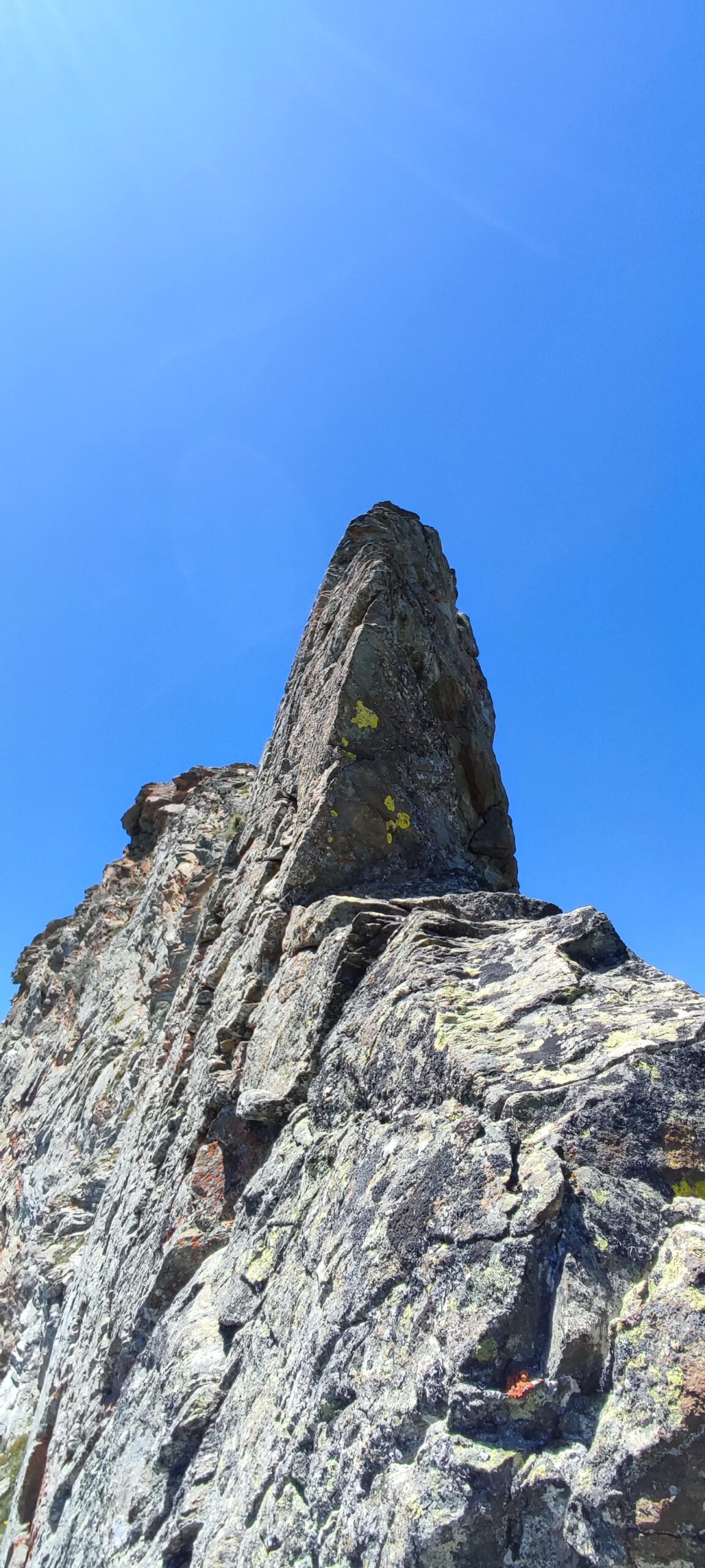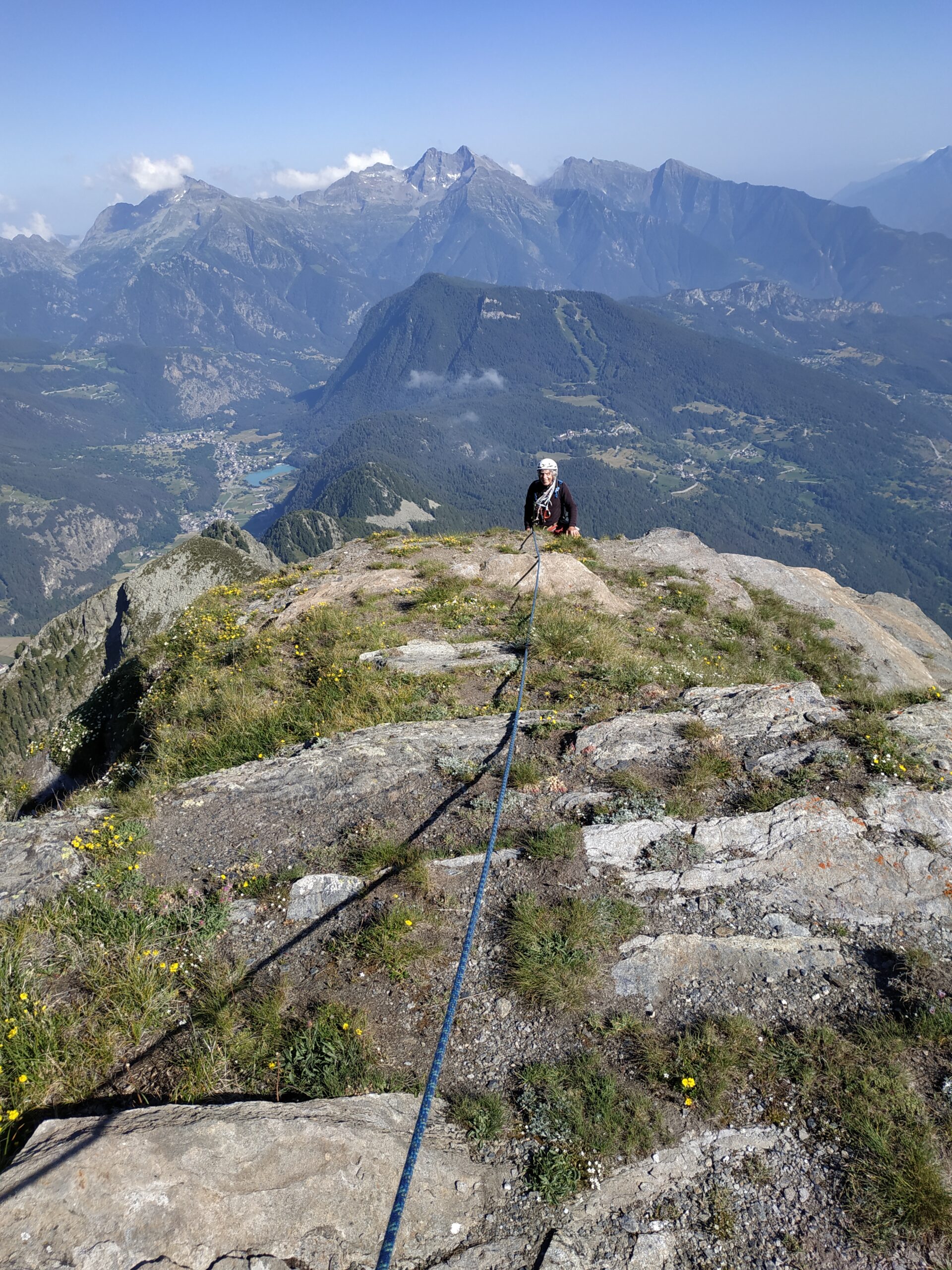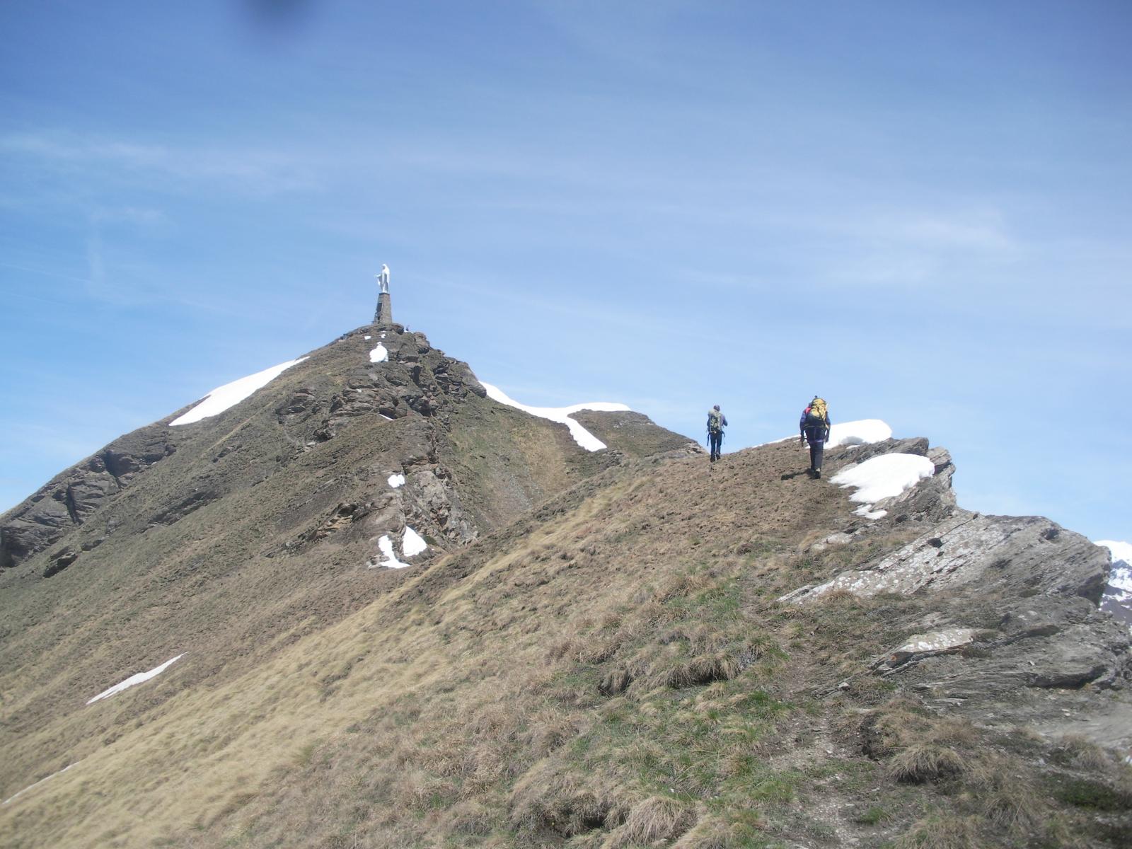 Senza più nessuna difficoltà si supera l’ultimo torrione con arrampicata semplice si guadagna l’anticima dello Zerbion. Da lì in pochi minuti si arriva in vetta dove c’è la statua della Madonna.
