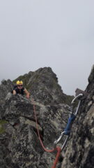 Materiale usato una mezza da 30m, quattro friend medio piccoli cordini in numero di quattro tre rinvii.