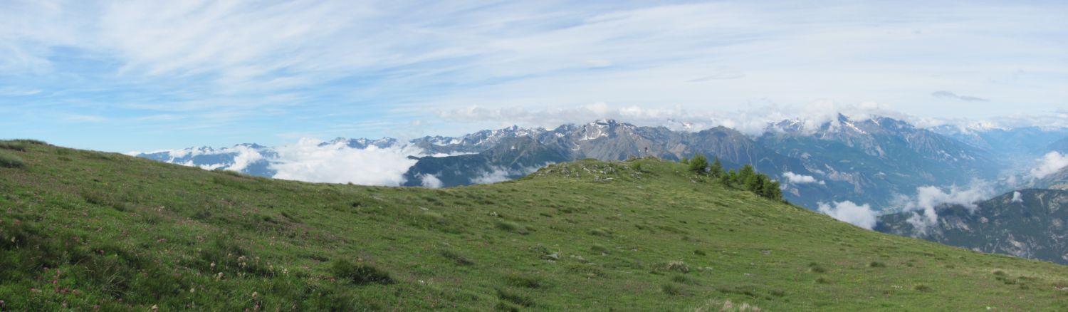 In questa breve parentesi di tempo non brutto .. veloce gita allo Zerbion da Promiod in solitudine, anche se in realtà mi ha fatto compagnia l’acufene che dopo alcuni mesi è tornato. Appena arrivato in vetta, vento freddo e nebbia. Panorama limitato. Sceso subito facendo l’anello. Sono passato dal Col Portula e preso il sentiero 12 fino alla Baita Champ raggiunta su tracce di bestiame, poi su poderale. Tanti escursionisti dalla Val d’Ayas e uno solo da Promiod.
