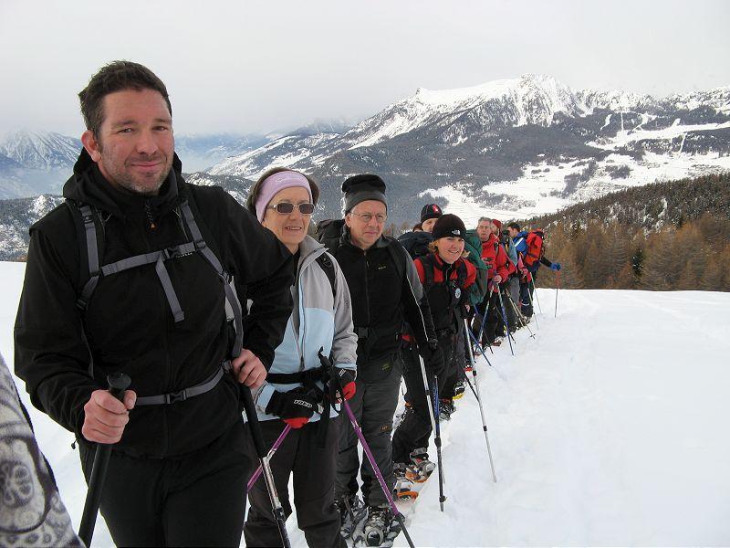 Consueta gita di apertura della stagione invernale del CAI Chatillon con skialp e ciaspolatori united. Discreto numero di partecipanti (una quarantina) nonostante le defezioni per il residuo maltempo mattutino. E in effetti salendo dal Piemonte sull’A5 nevicava. Giunti a Promiod si iniziava a vedere l’azzurro del cielo e il tempo è migliorato costantemente nel corso della giornata su questa zona di VdA.