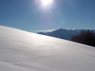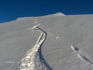 Se la gita allo Zerbion del 01 gennaio 09 l’avevo definita entusiasmante, quella di oggi la definirei “ MAGICA”. Partito alle 12.30 da Promiod con temperatura -3, 12 cm di neve farinosa della notte e + di venti nel tratto alto. Solo altri 3 sciatori tra cui uno che imprecava per lo zoccolo che aveva avuto sia in salita che in discesa. Io non ho avuto questo problema in quanto ho sempre dietro il mio Kit salva gita, contenente sciolina, raschietto e spray per le pelli. Neve da urlo per tutta la gita e soprattutto tutto era immacolato a mia disposizione. Consigliatissima visto il meteo dei prossimi giorni. Io non sono andato oltre il traverso in quanto c’erano un po’ di cornici e poi ero soletto.