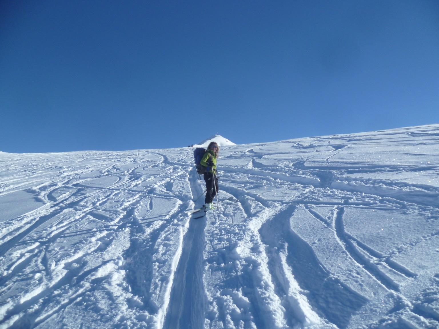 Partenza dal parcheggio verso le 9 e in vetta poco prima di mezzogiorno su ottima traccia. Bellissime condizioni e innevamento abbondante su tutto l’itinerario. Lasciati gli sci prudentemente appena sotto la cima a salito l’ultimo tratto a piedi ma oggi si arrivava bene su con gli sci e in parecchi l’hanno fatto. Discesa spettacolare, ottimo il bosco. Parecchi sci alp e ciaspolari oggi sul percorso.