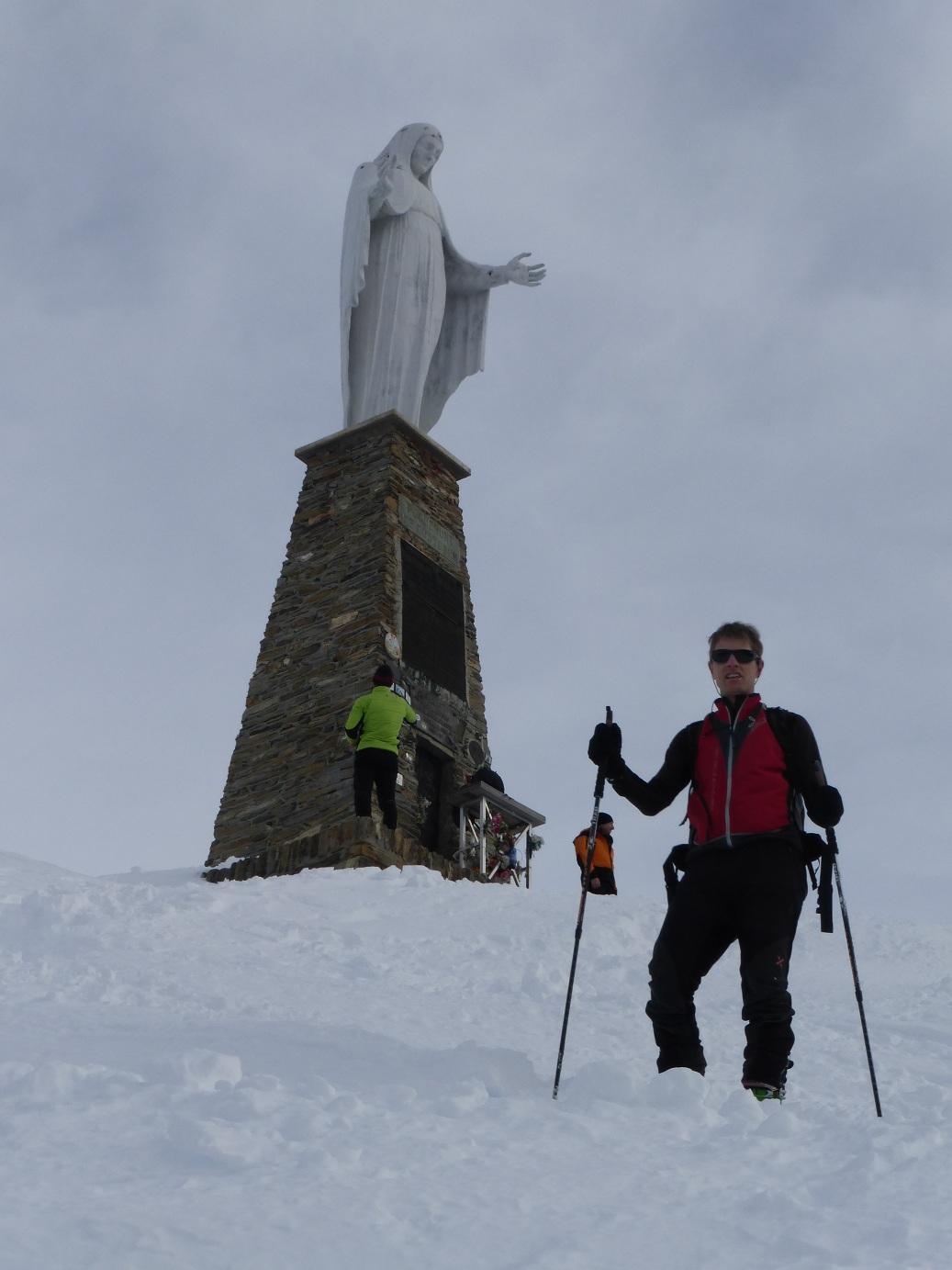 partiti alle 9,15 sci ai piedi,che si lasciano 300 mt sotto la cima, anche oggi ci siamo divertiti (con Giordano) bella traccia sia con gli sci che la parte finale dove bisogna fare un pò di attenzione per non ritrovarsi a Chatillon senza fare neppure una curva, neve un pò pesante ma ancora divertente fino in fondo,ultimo tratto su strada di salita, si scende fino alla macchina. buone gite a tutti.