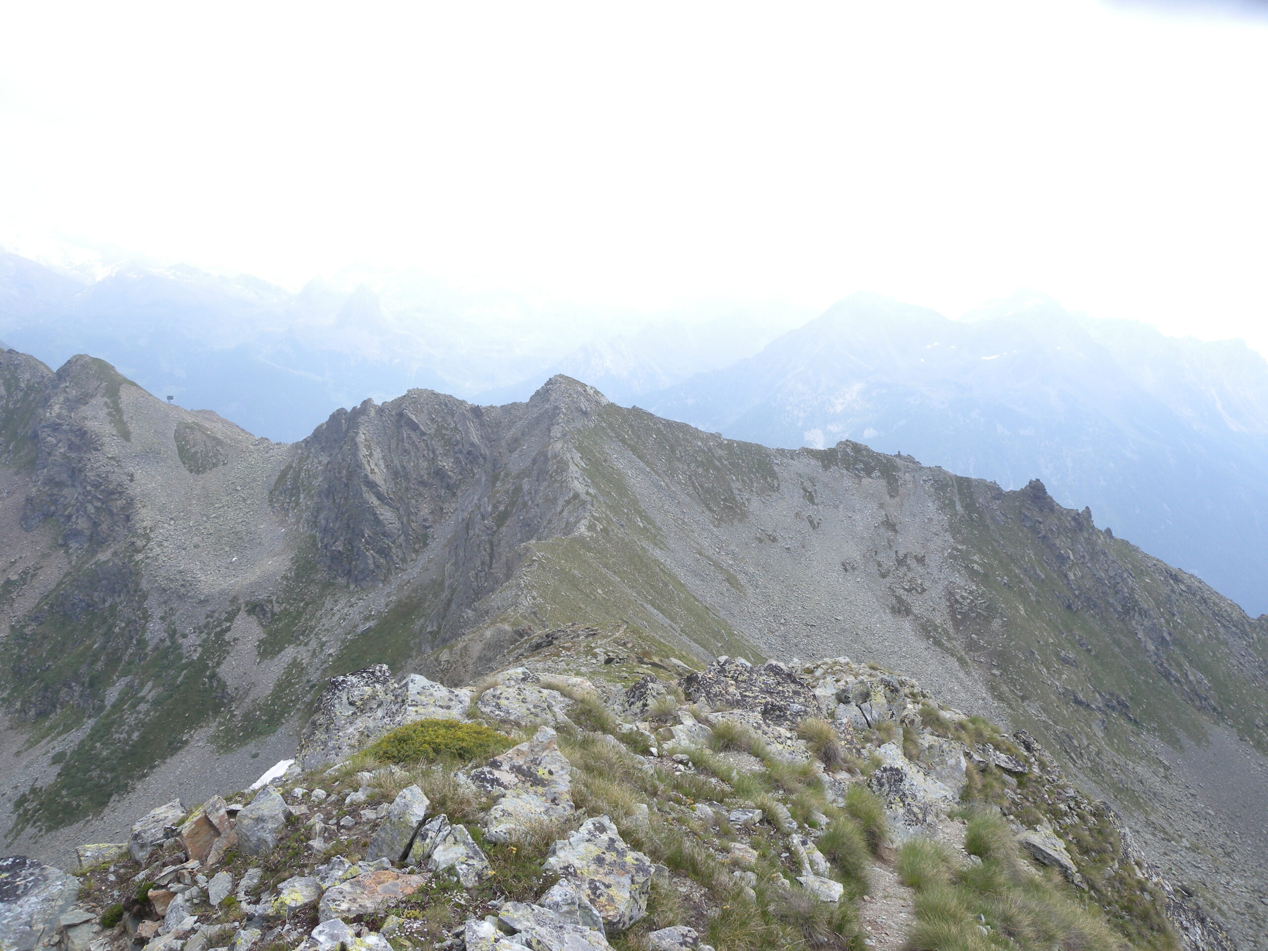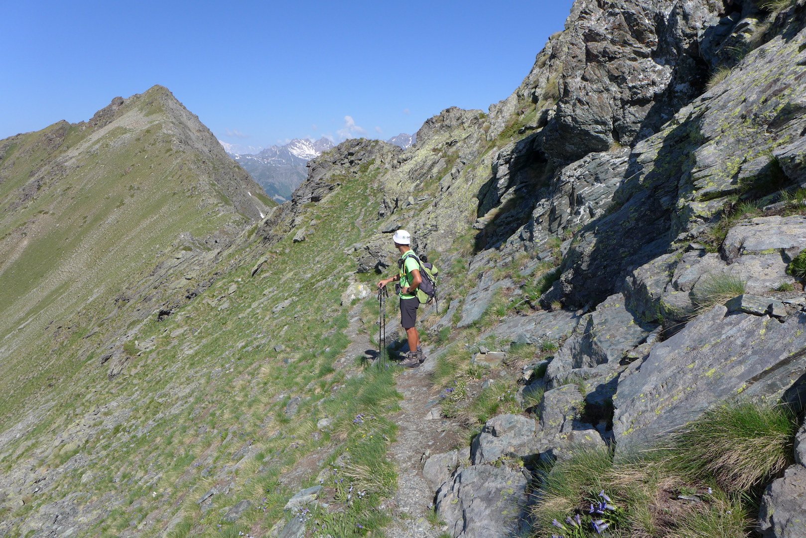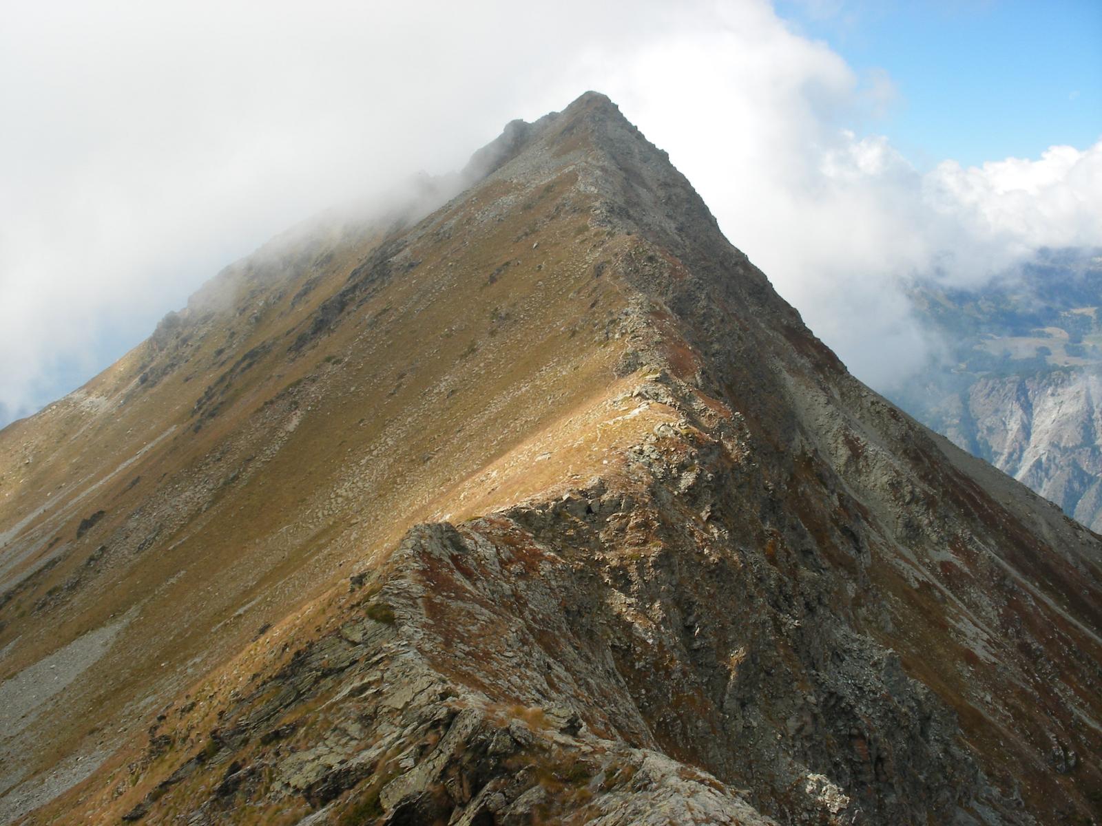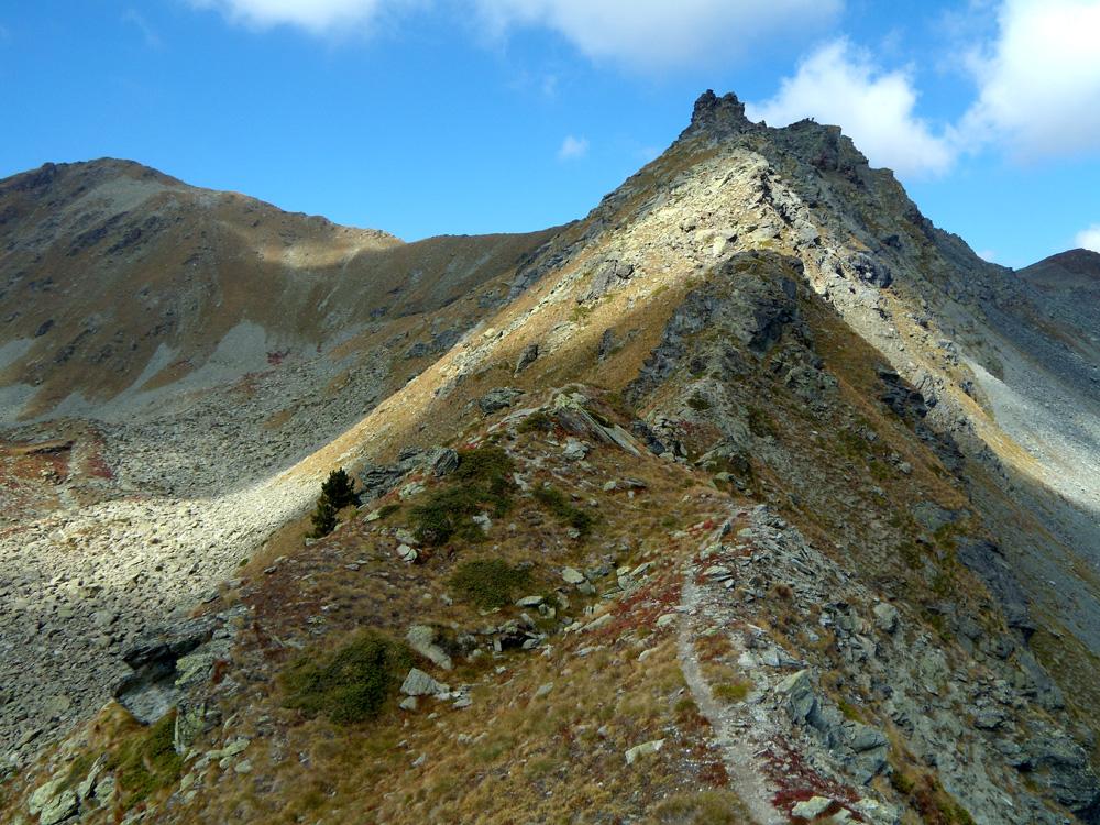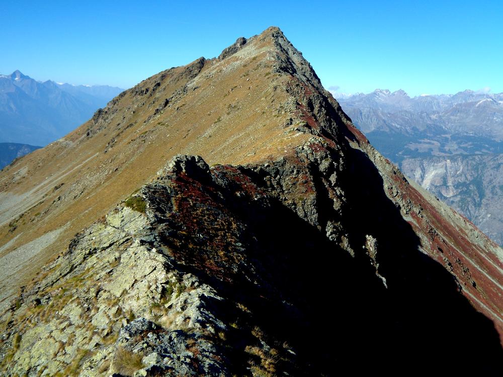 si prosegue dapprima su ampio sentiero per cresta erbosa, poi su cresta che si fa più affilata e rocciosa. ci sono 2 gendarmi da passare, con qualche tratto che richiede uso mani, per poi tornare su sentiero. si lascia la dorsale spartiacque tra ayas e valtournenche e si prosegue la cresta a sx. ancora un paio di tratti un po’ delicati poichè la cresta si fa un po’ affilata, di nuovo sentiero e in breve si è in punta. ritorno fino al colle portola seguendo lo stesso itinerario o prendendo il sentiero basso che passa poco sotto i 2 gendarmi.