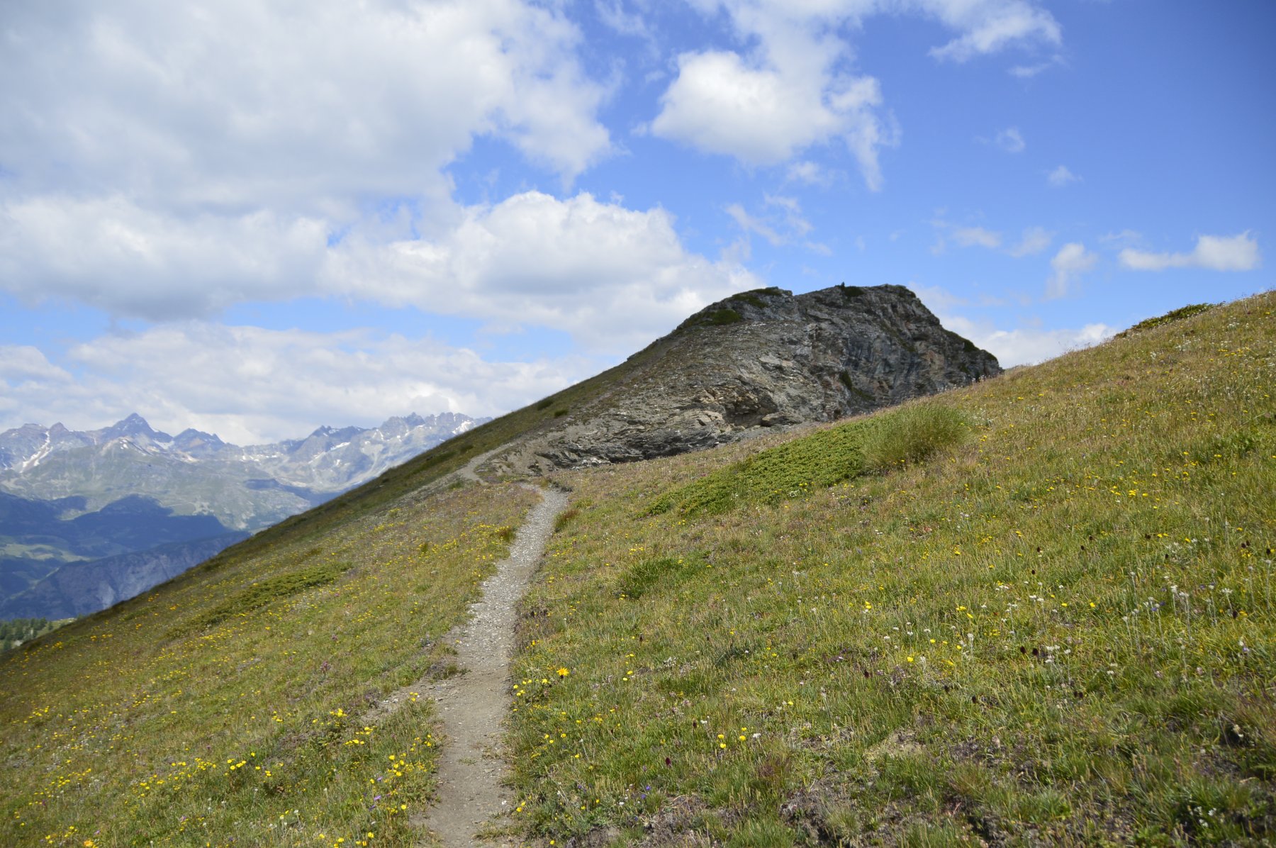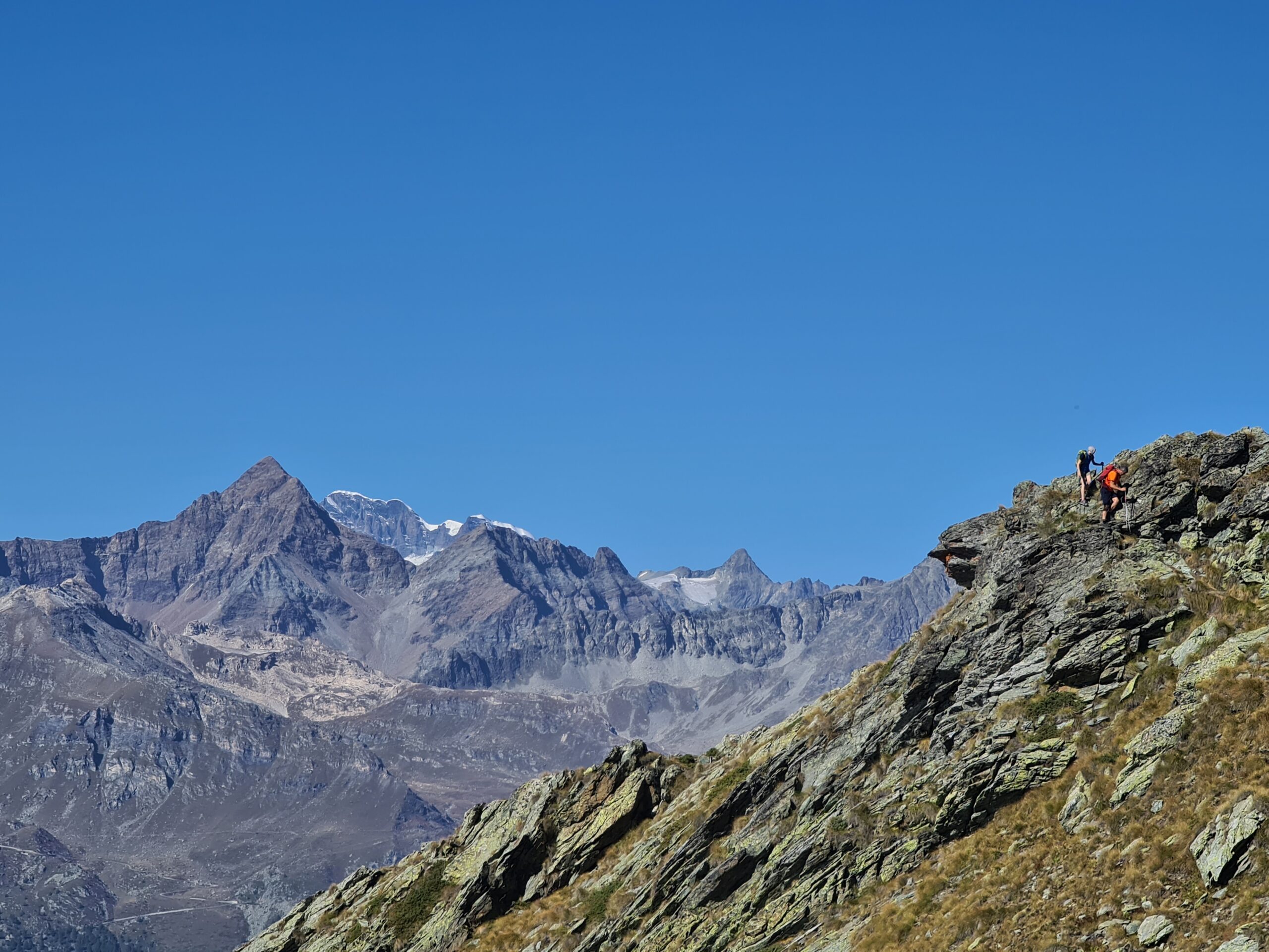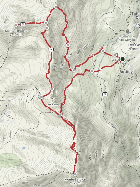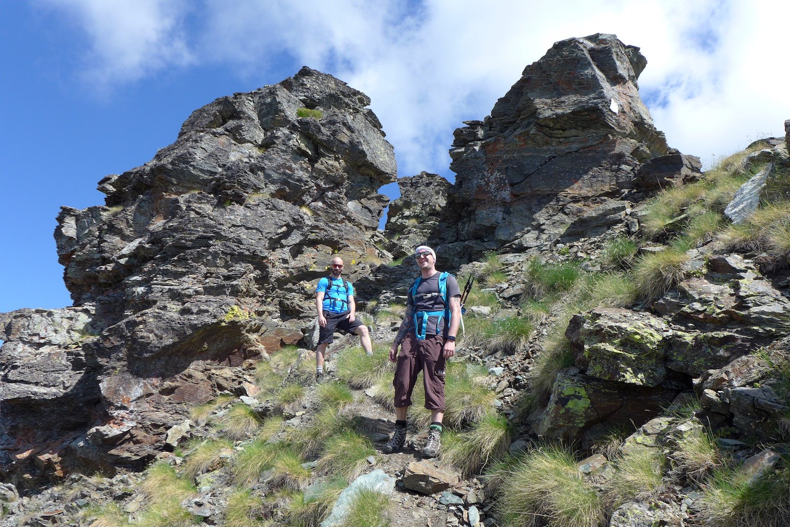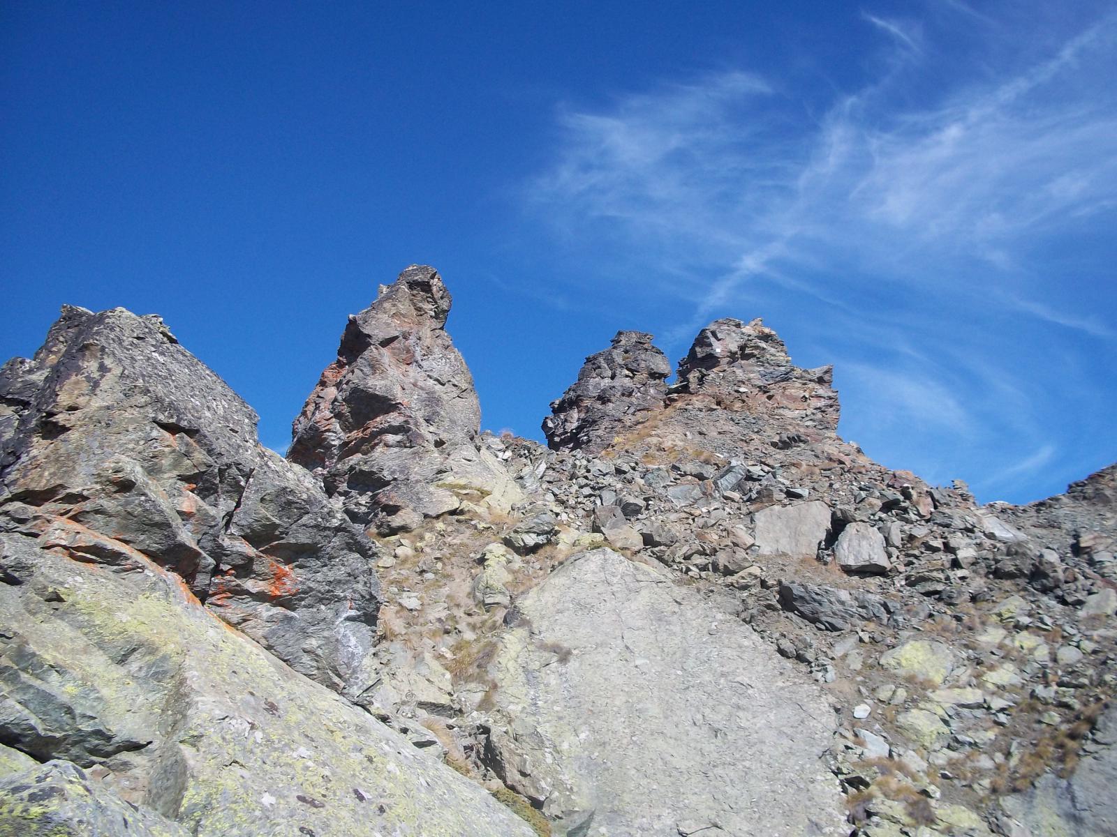 si prosegue dapprima su ampio sentiero per cresta erbosa, poi su cresta che si fa più affilata e rocciosa. ci sono 2 gendarmi da passare, con qualche tratto che richiede uso mani, per poi tornare su sentiero. si lascia la dorsale spartiacque tra ayas e valtournenche e si prosegue la cresta a sx. ancora un paio di tratti un po’ delicati poichè la cresta si fa un po’ affilata, di nuovo sentiero e in breve si è in punta. ritorno fino al colle portola seguendo lo stesso itinerario o prendendo il sentiero basso che passa poco sotto i 2 gendarmi.