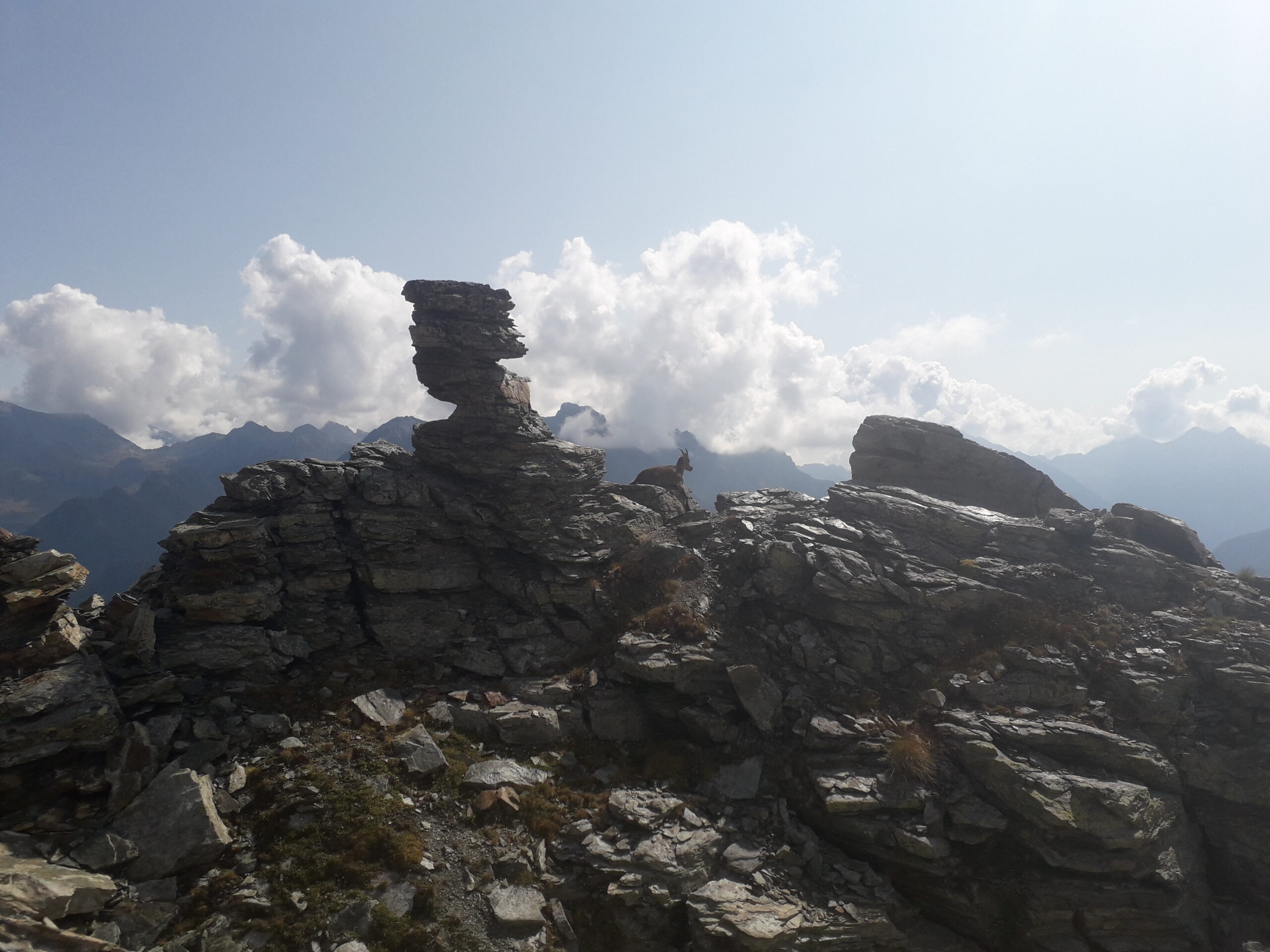 Salito solo il Tantanè dato che le Zerbion lo avevo già salito più volte e integralmente d’inverno. Sentiero ottimo e stra-gradonato fino al colle, dal colle in poi salito sul crestone dei gendarmi: nulla di particolare se non le sezioni attrezzate che sono 3 con catene (superflue a mio avviso, con buon “grip” ed esposizione contenuta) e con un gradino metallico, passaggi molto brevi, ma in compenso si attraversa una scomoda pietraietta. Dal ricongiugimento con la traccia che taglia a mezzacosta il versante ovest dell’antecima si trova il passaggio semi-obbligato all’andata in discesa sul crestone est: placchette rocciose semiappoggiate (occhio se umide: serpentino), niente di che…, ma richiede piede fermo e il non dare troppa confidenza alla roccia se bagnata…, volendo si può evitare il passaggio tagliando più basso (versante sud) per tracce scomode e malagevoli. Itinerario sconsigliato se bagnato, neve, ecc. preferire in questo caso la salita dalla Valtournanche.
