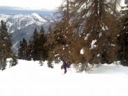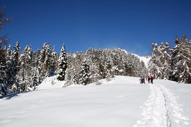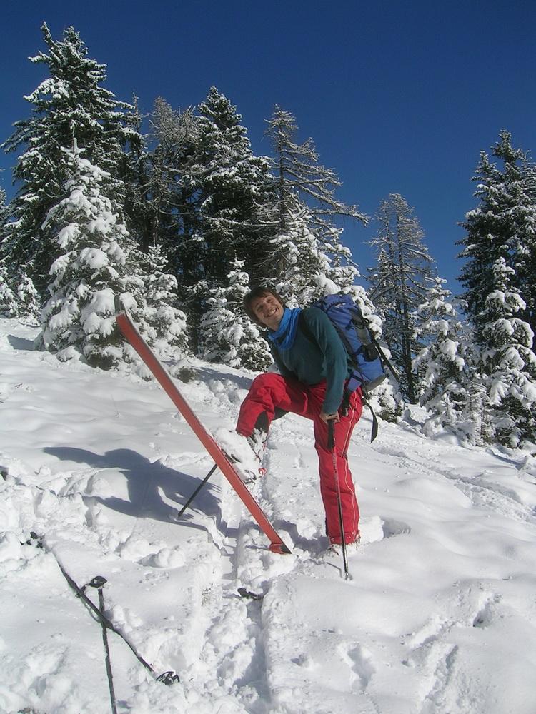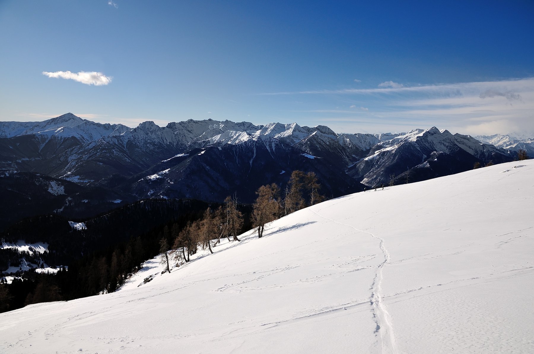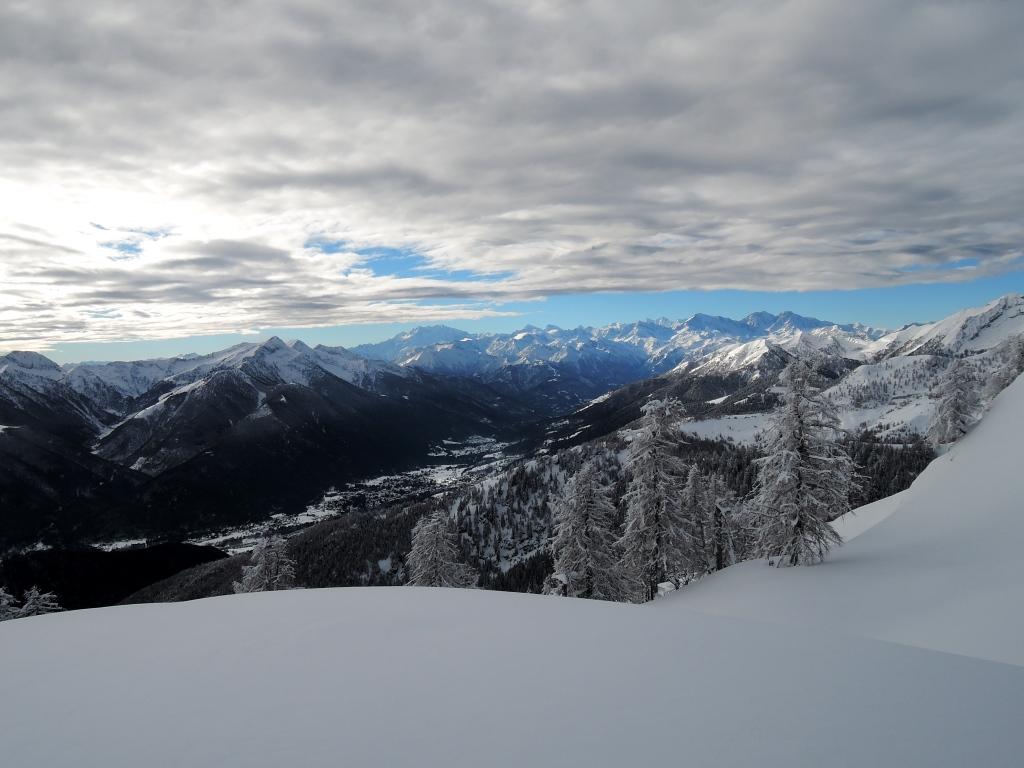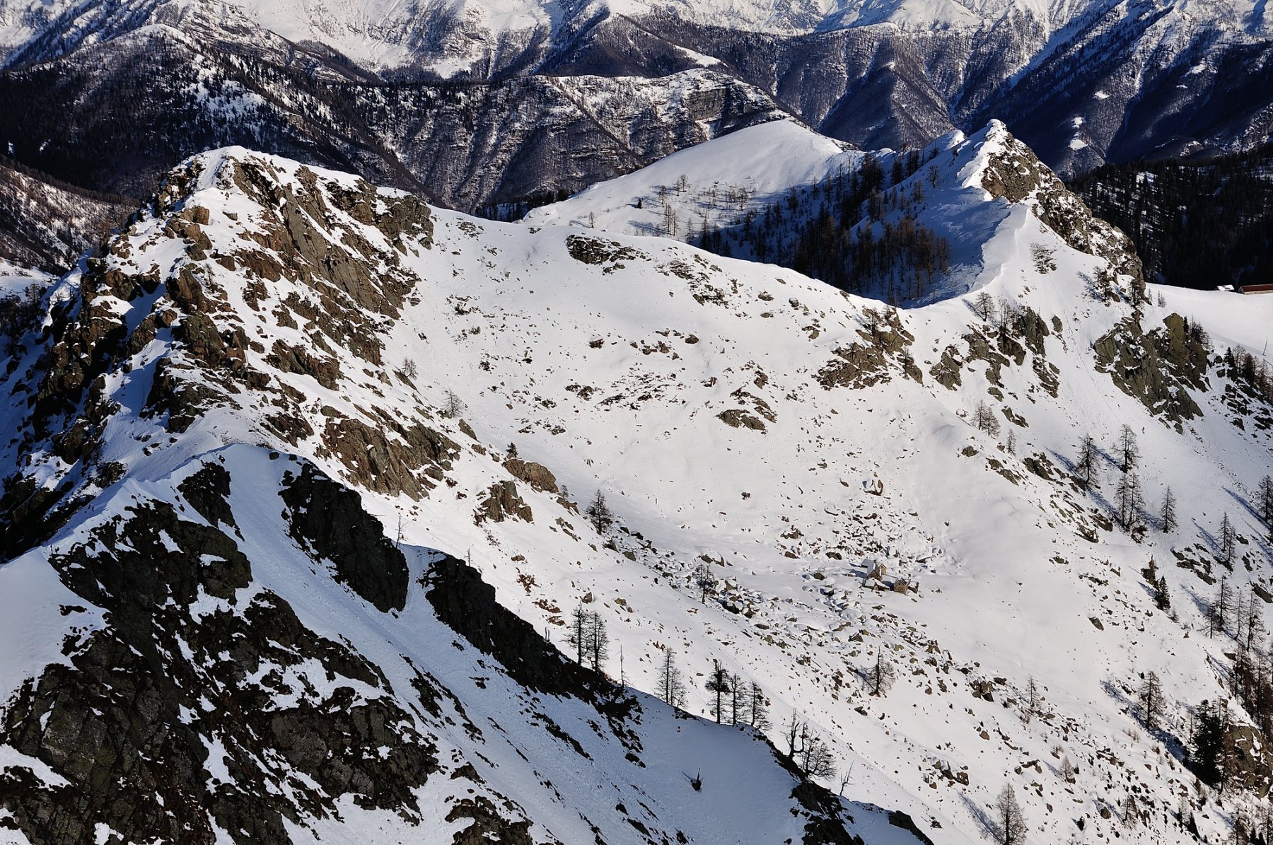 Dal parcheggio seguire la strada fino a dove si ritiene possibile salire sui prati a sinistra, da cui si raggiunge la chiesa del Blitz a 1270 m. A Monte della chiesa, in direzione Nord salire per i prati deviando poi a destra verso il gruppo di baite dell’Alpe Pragrande. Seguire se possibile le tracce del sentiero estivo che portano ad attraversare uno stretto ed incassato valloncello, passaggio che può comportare qualche difficoltà. Dopo un tratto ripido su prato e un altro attraversamento ci si alza verso l’Alpe Oro da cui in prossimità di una fontana si rientra nel bosco. Sempre seguendo, se visibile, il sentiero estivo ci si alza in direzione Nord-Nord-Ovest; spostarsi poi verso destra fino a raggiungere la dorsale che si affaccia sulla Valle degli Orti, comodo riferimento per il resto della salita. Senza sporgersi eccessivamente verso gli strapiombi del versante orientale raggiungere la cresta sommitale che con un lungo traverso a sinistra conduce alla sella sotto la cima. Gli ultimi metri si percorrono di solito senza sci; è necessario seguire il filo di cresta evitando i pendii laterali facilmente soggetti a scaricamenti. Per la discesa si consiglia di tenersi al centro degli ampi prati sotto la sella; al rientro nel bosco spostarsi poi verso sinistra per ritrovare la traccia di salita che si segue nel rientro.