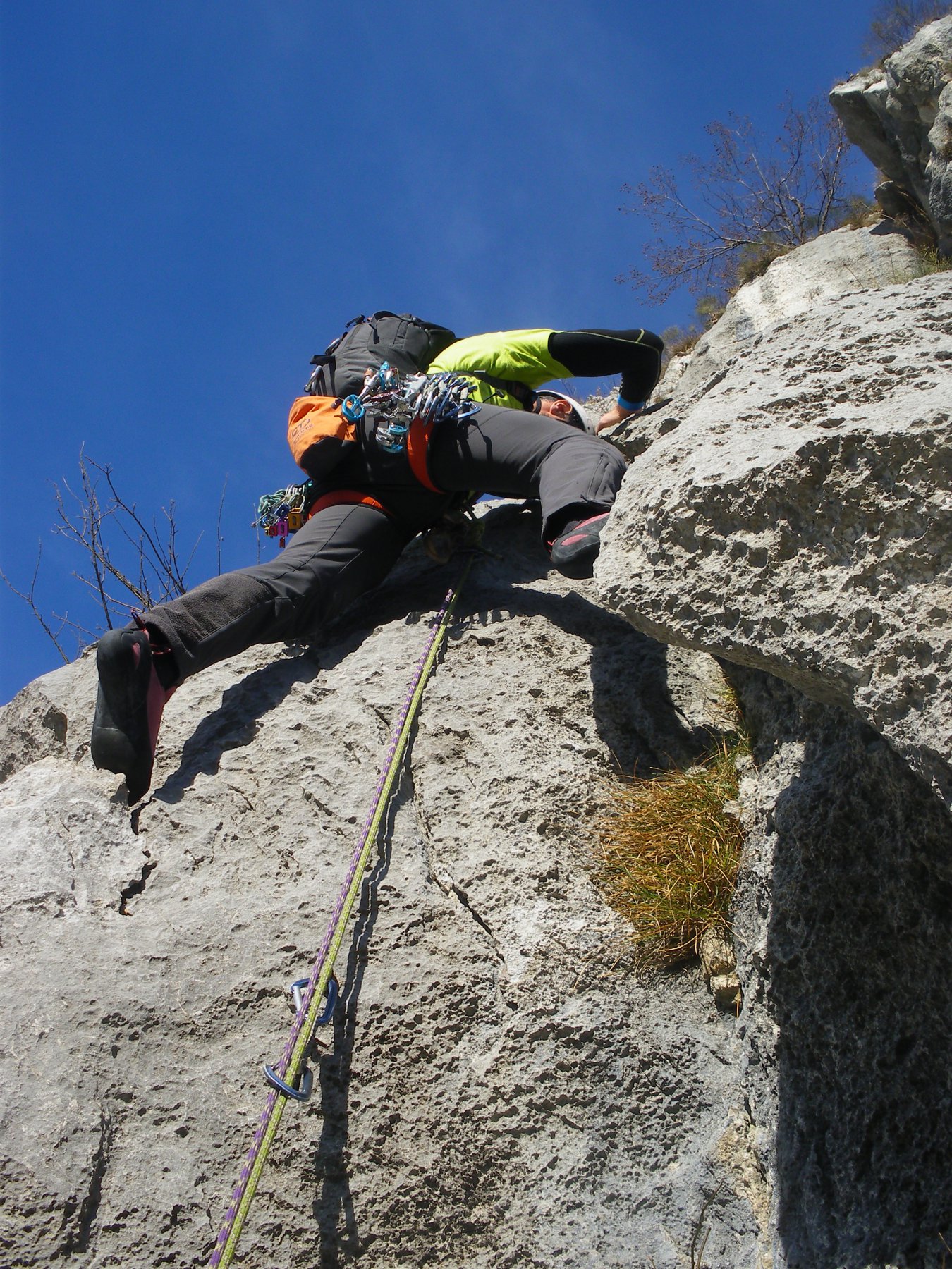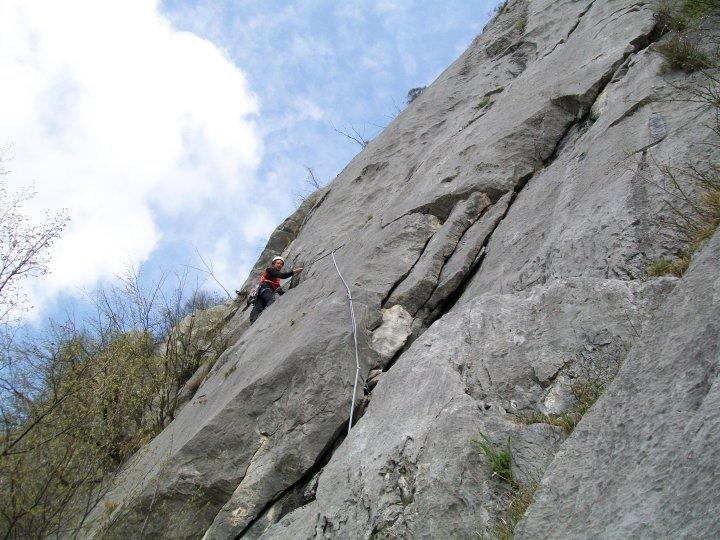 Bella via caratterizzata da diedri, fessure e placche. Alle soste catene o due fittoni da collegare. La quinta lunghezza presenta un camino un po’ ostico.