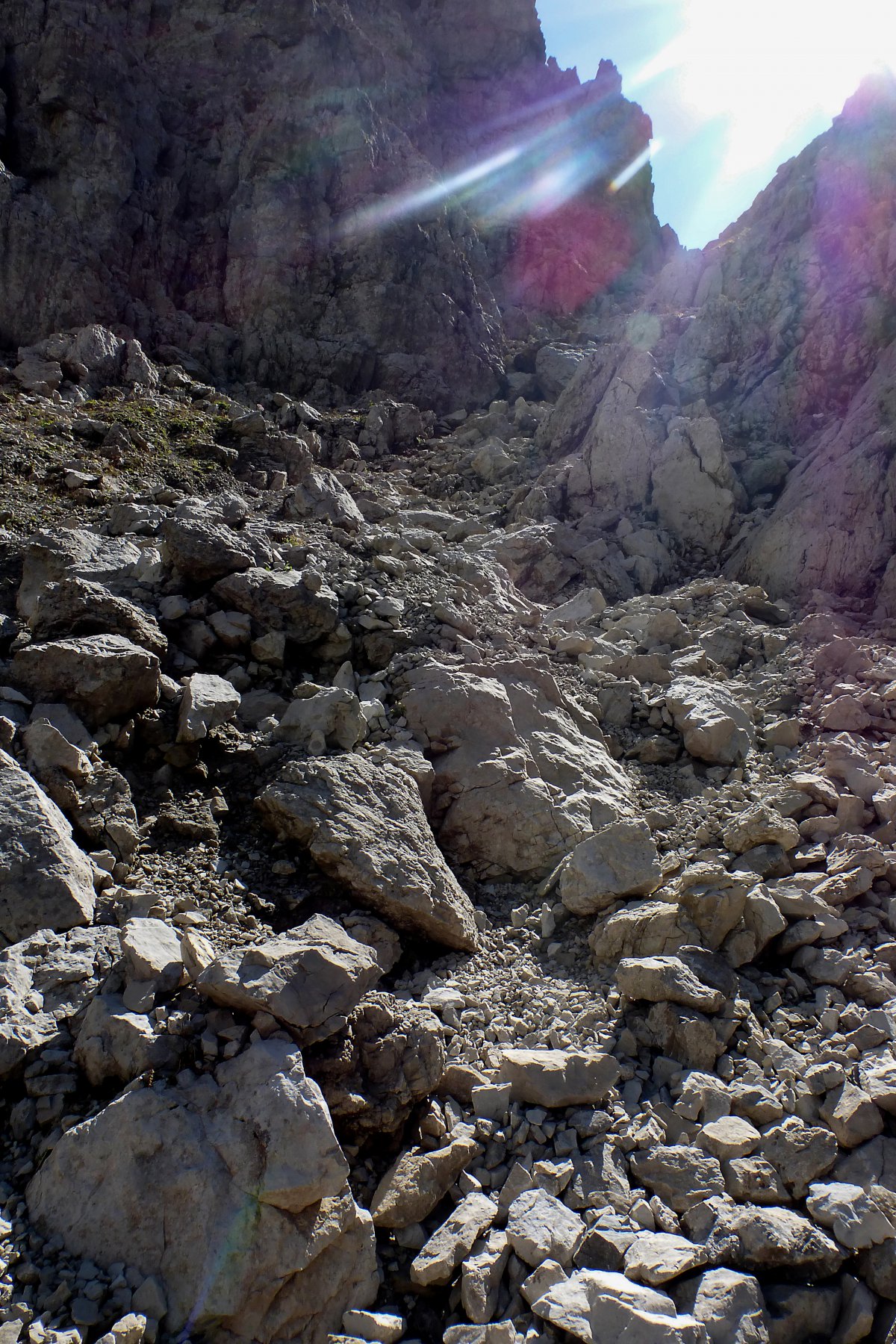 Dalla vetta si prosegue verso est lungo un evidente sentiero che porta ad una bocchetta, dalla quale si scende a sinistra il canale, spesso innevato fino a tarda primavera, che sbuca nel Vallone dei Camosci, da qui, seguendo il sentiero in direzione ovest si raggiunge il rifugio C.A.I. Lecco.