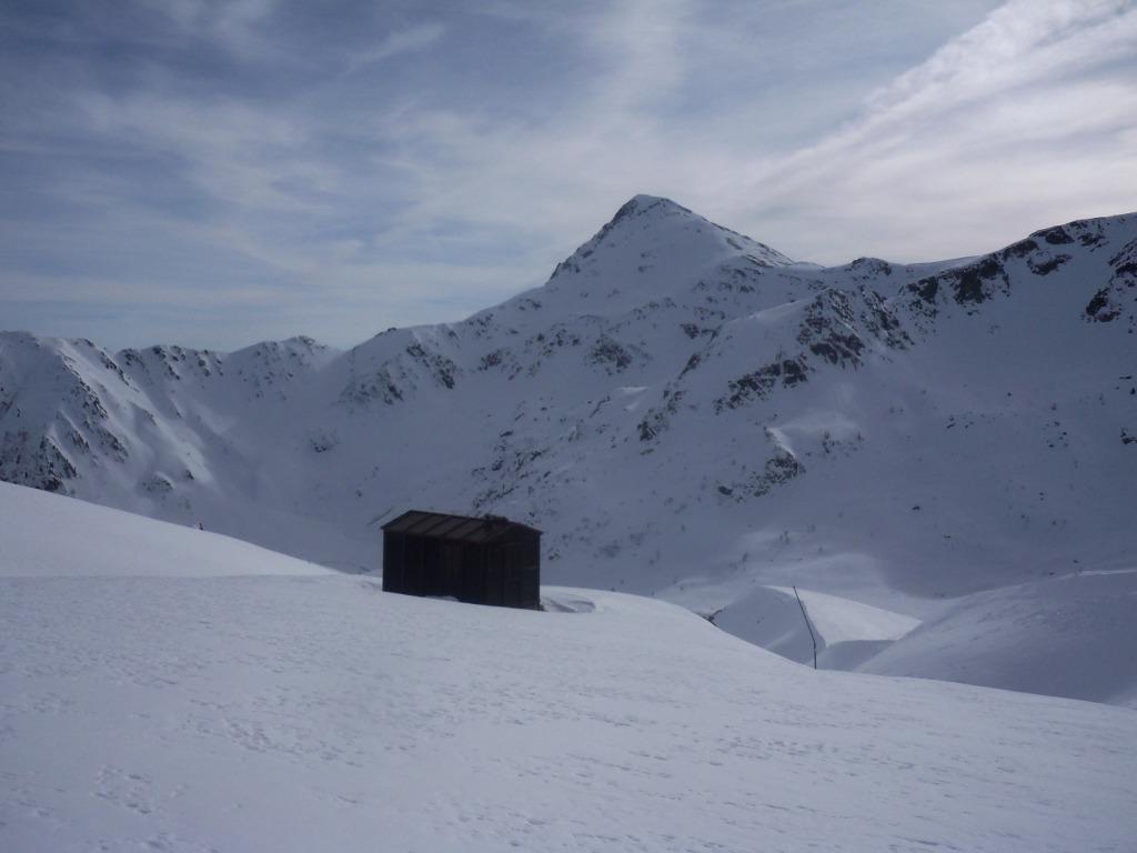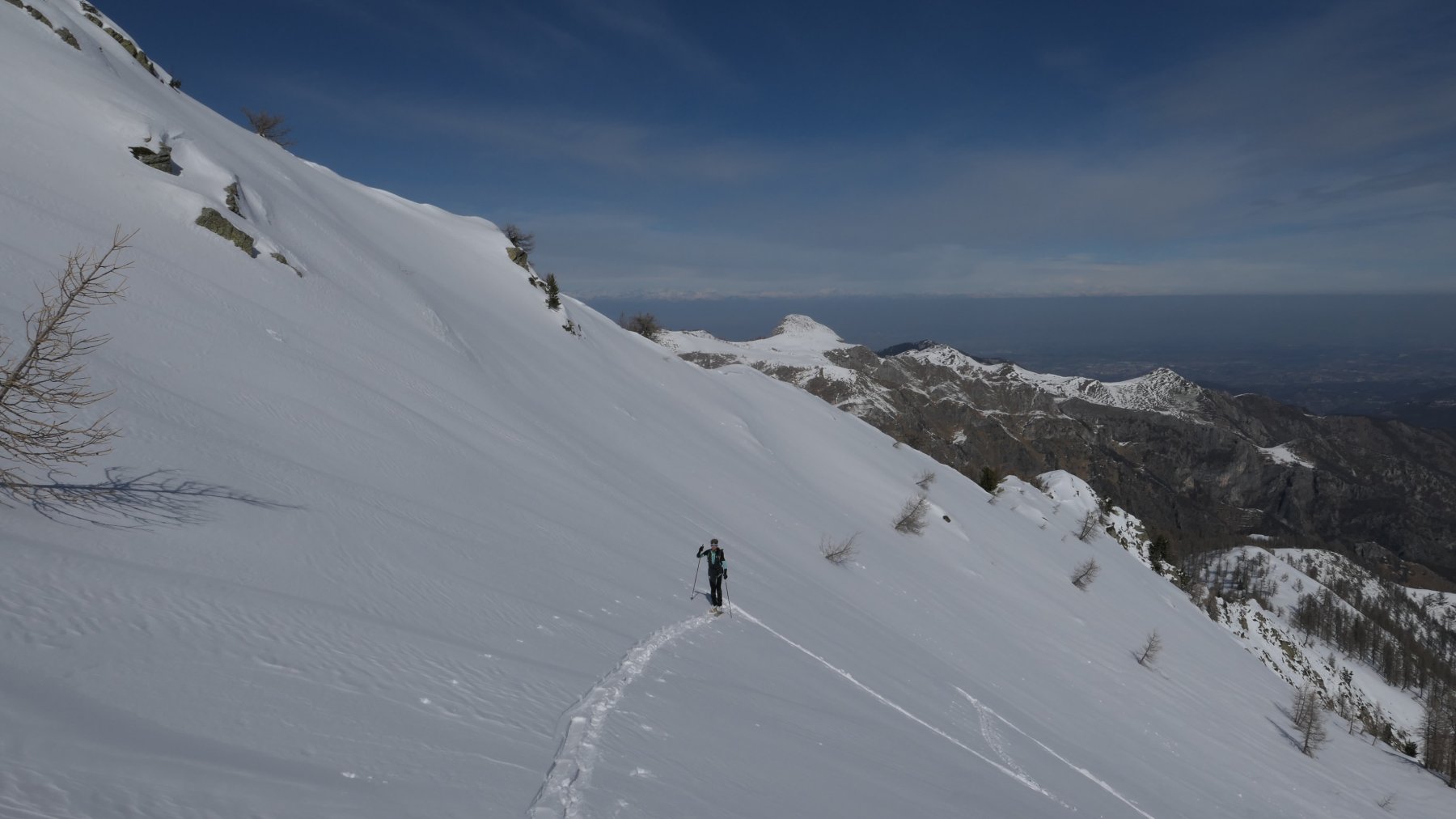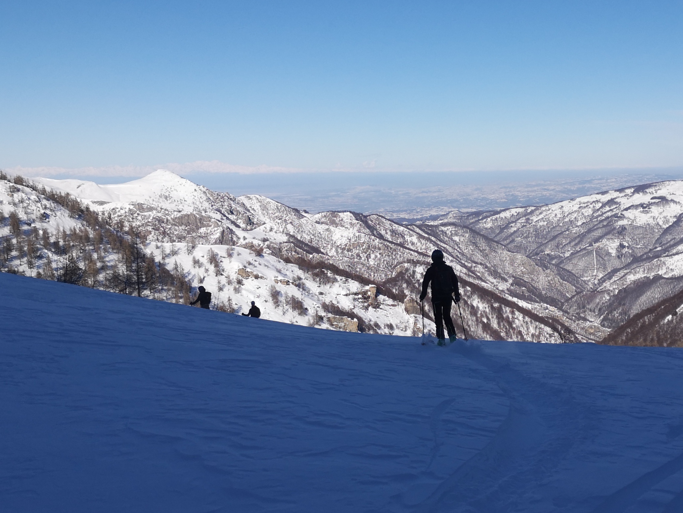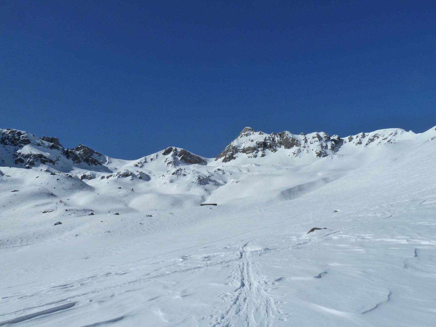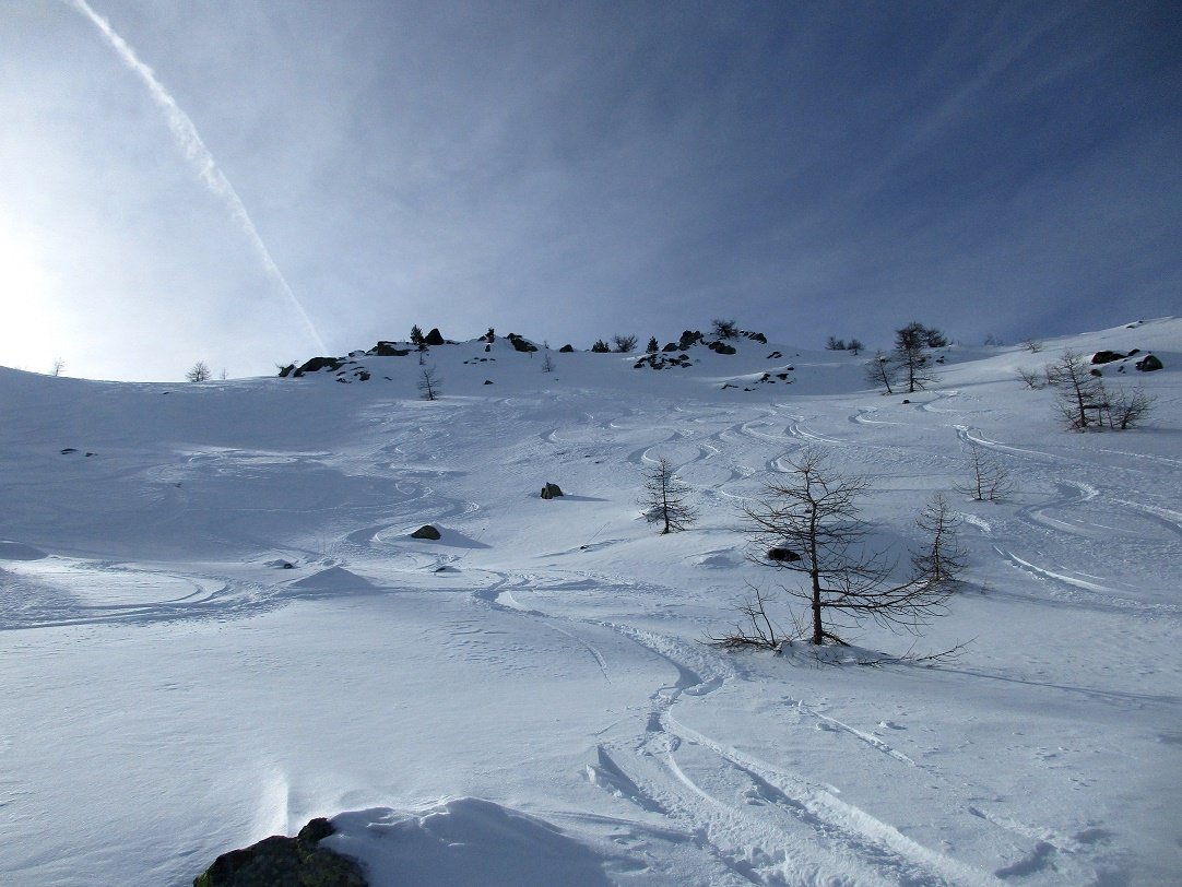 Con neve sicura dall’inizio della conca Revelli ci si può tenere più a destra senza passare dal bivacco e raggiungere più direttamente la punta.