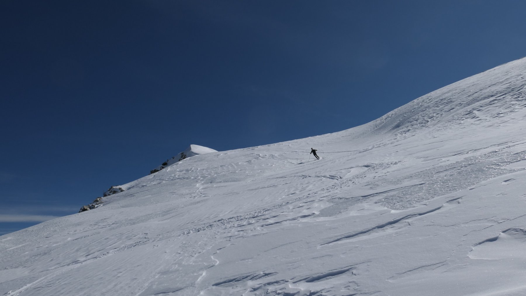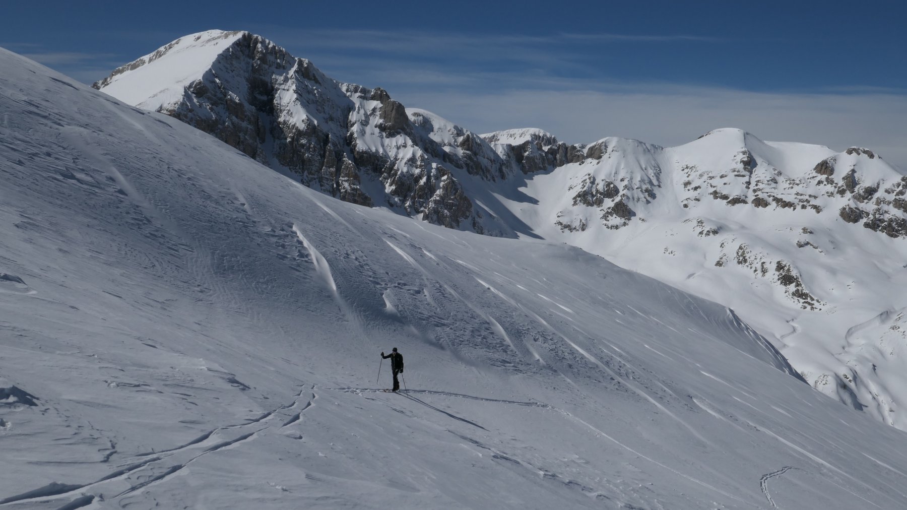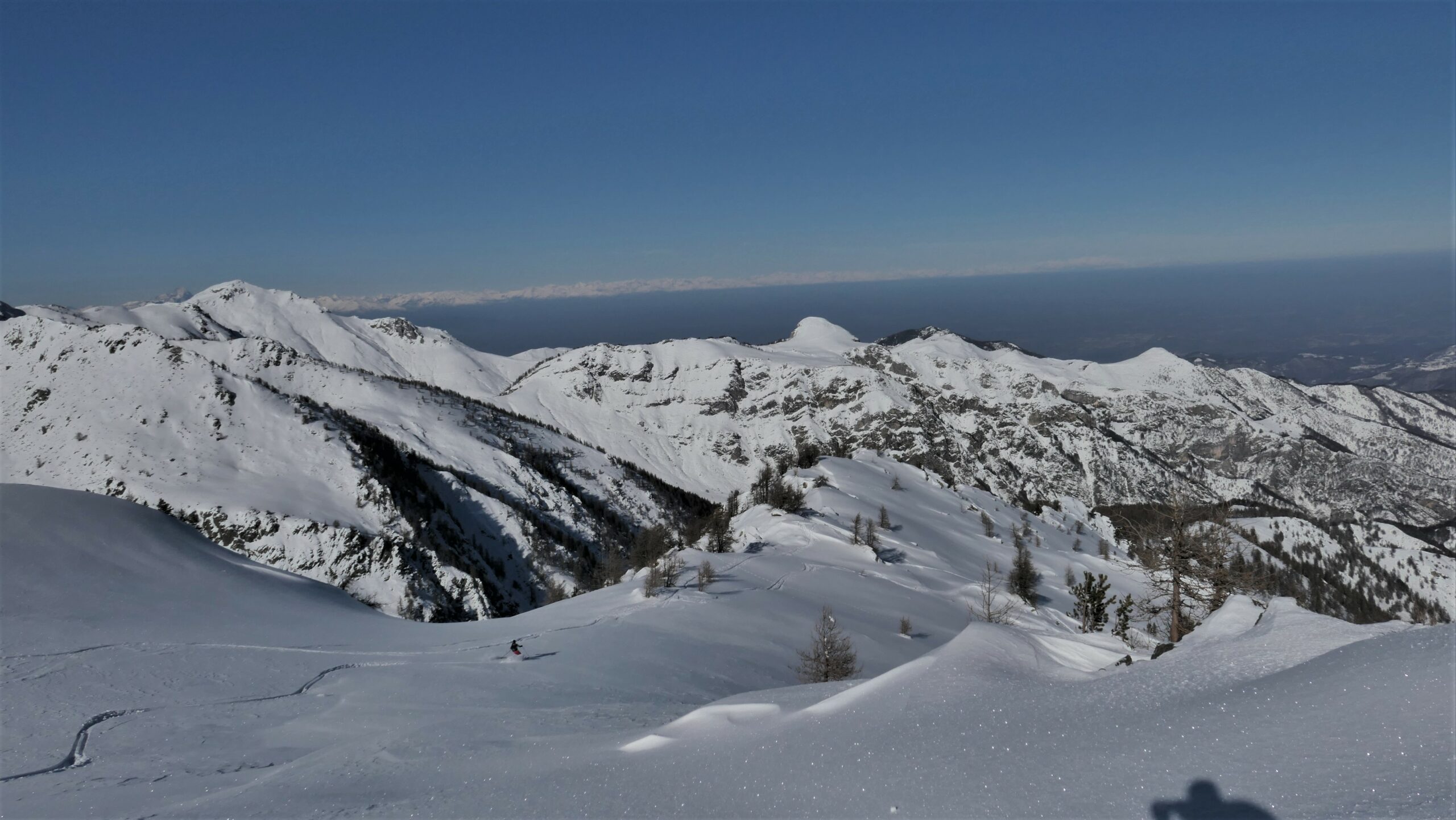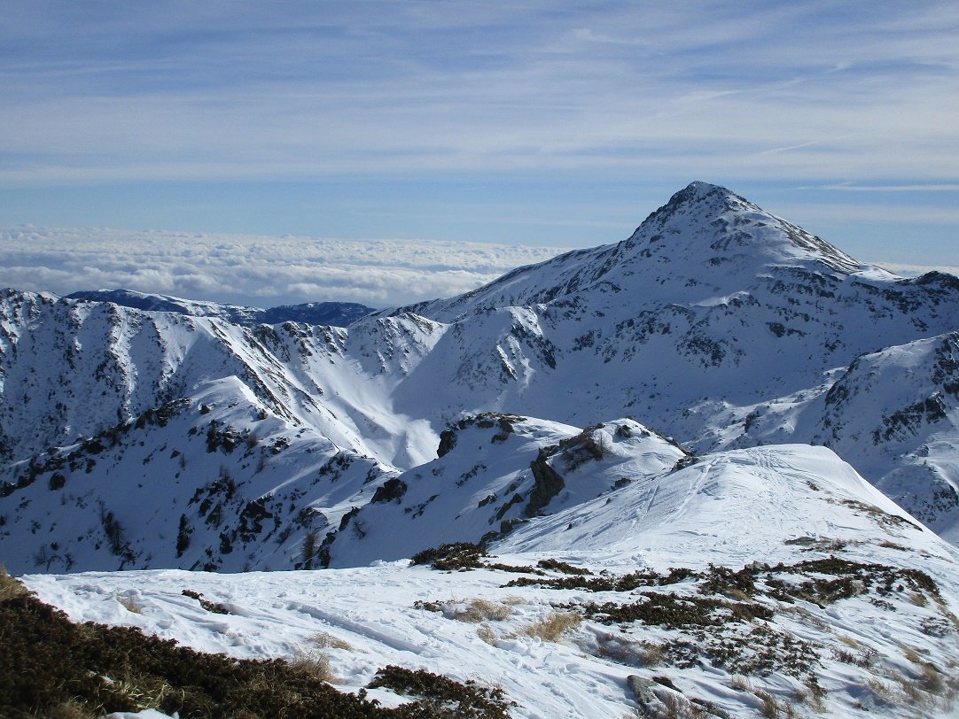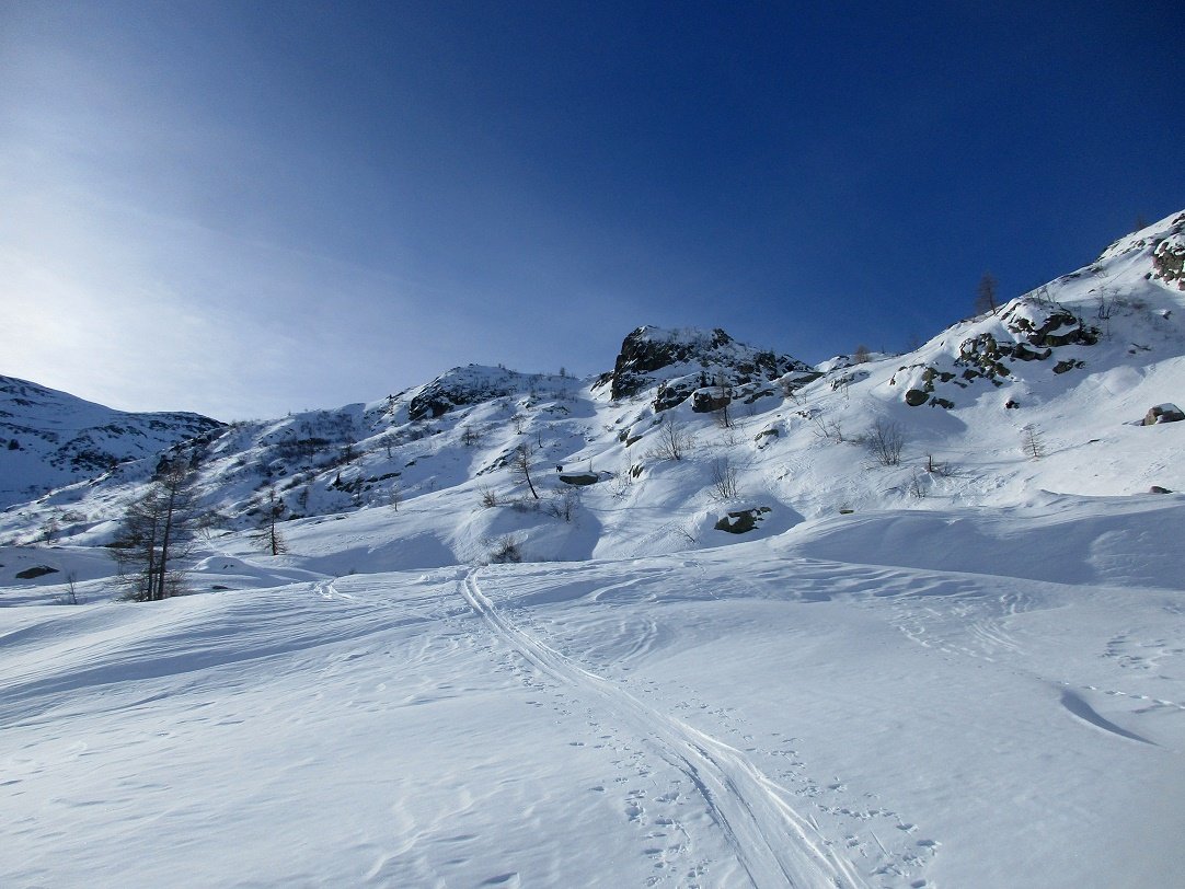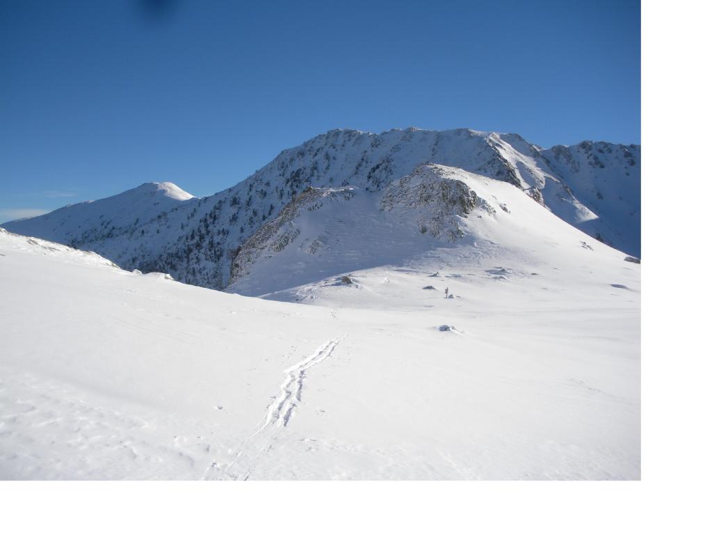 Con neve sicura dall’inizio della conca Revelli ci si può tenere più a destra senza passare dal bivacco e raggiungere più direttamente la punta.