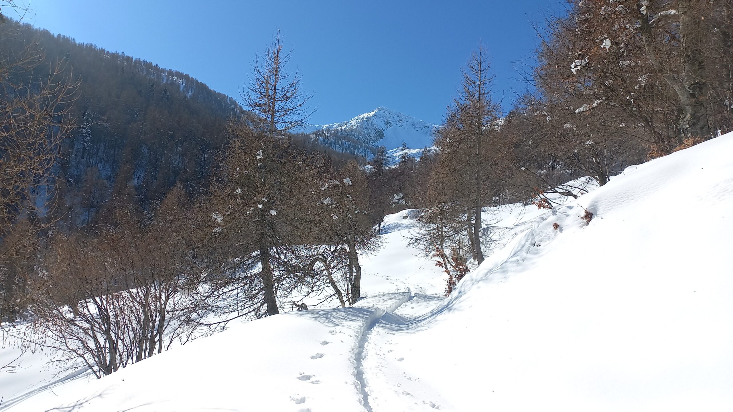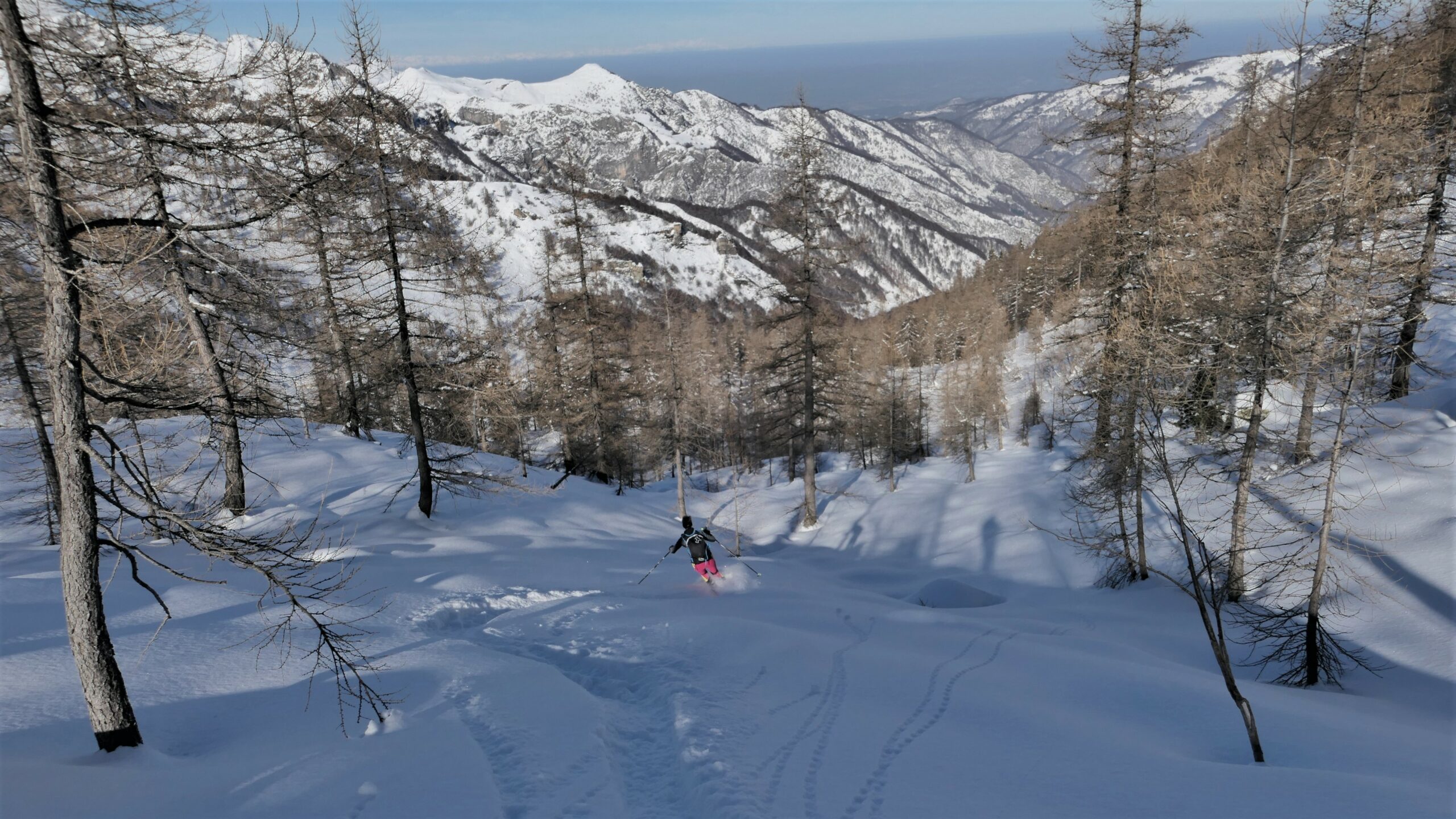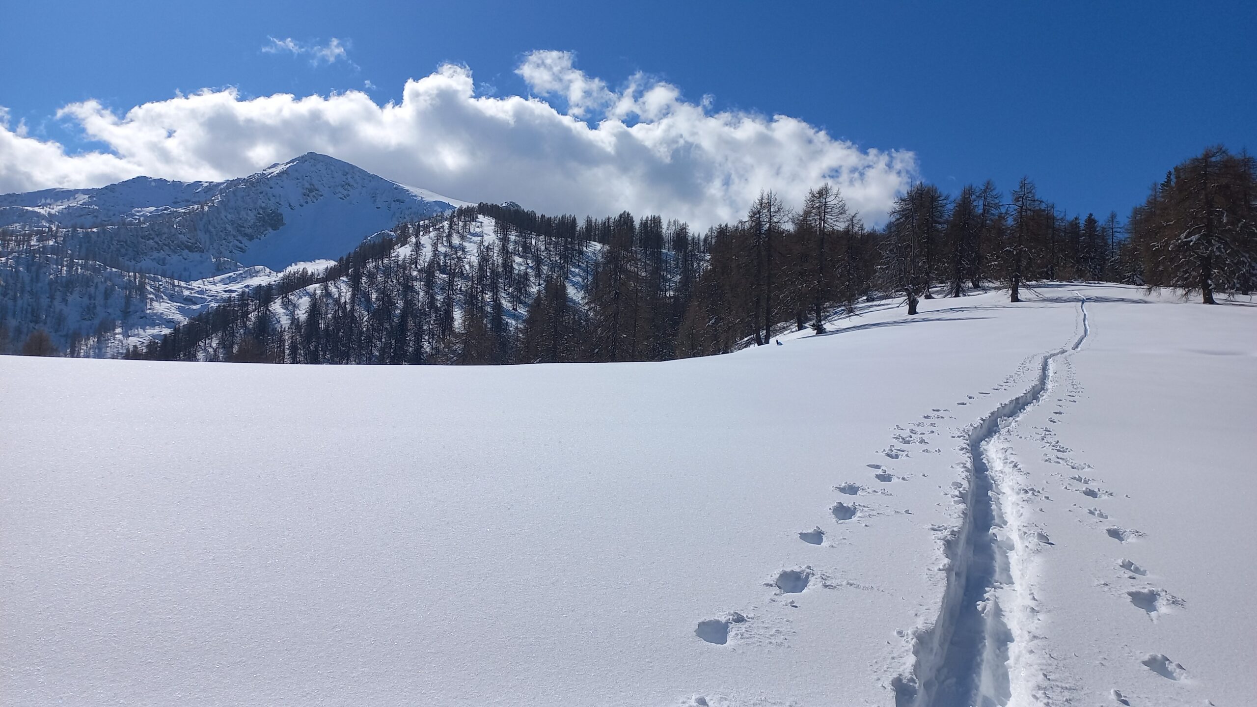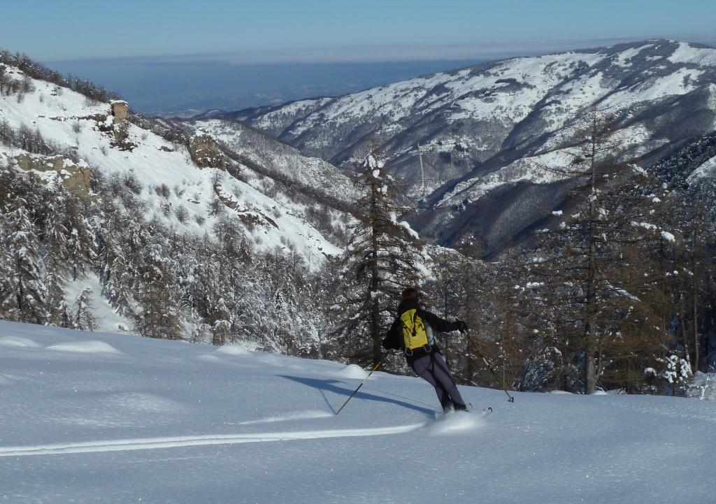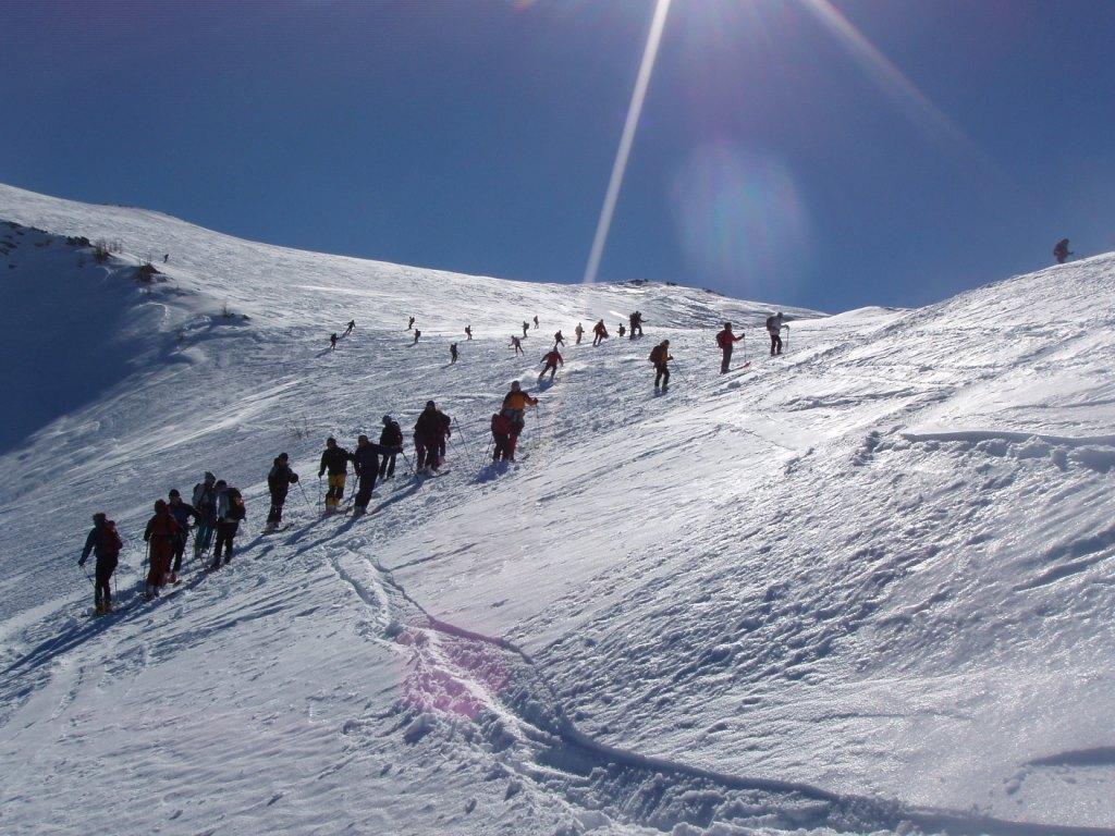 Con neve sicura dall’inizio della conca Revelli ci si può tenere più a destra senza passare dal bivacco e raggiungere più direttamente la punta.