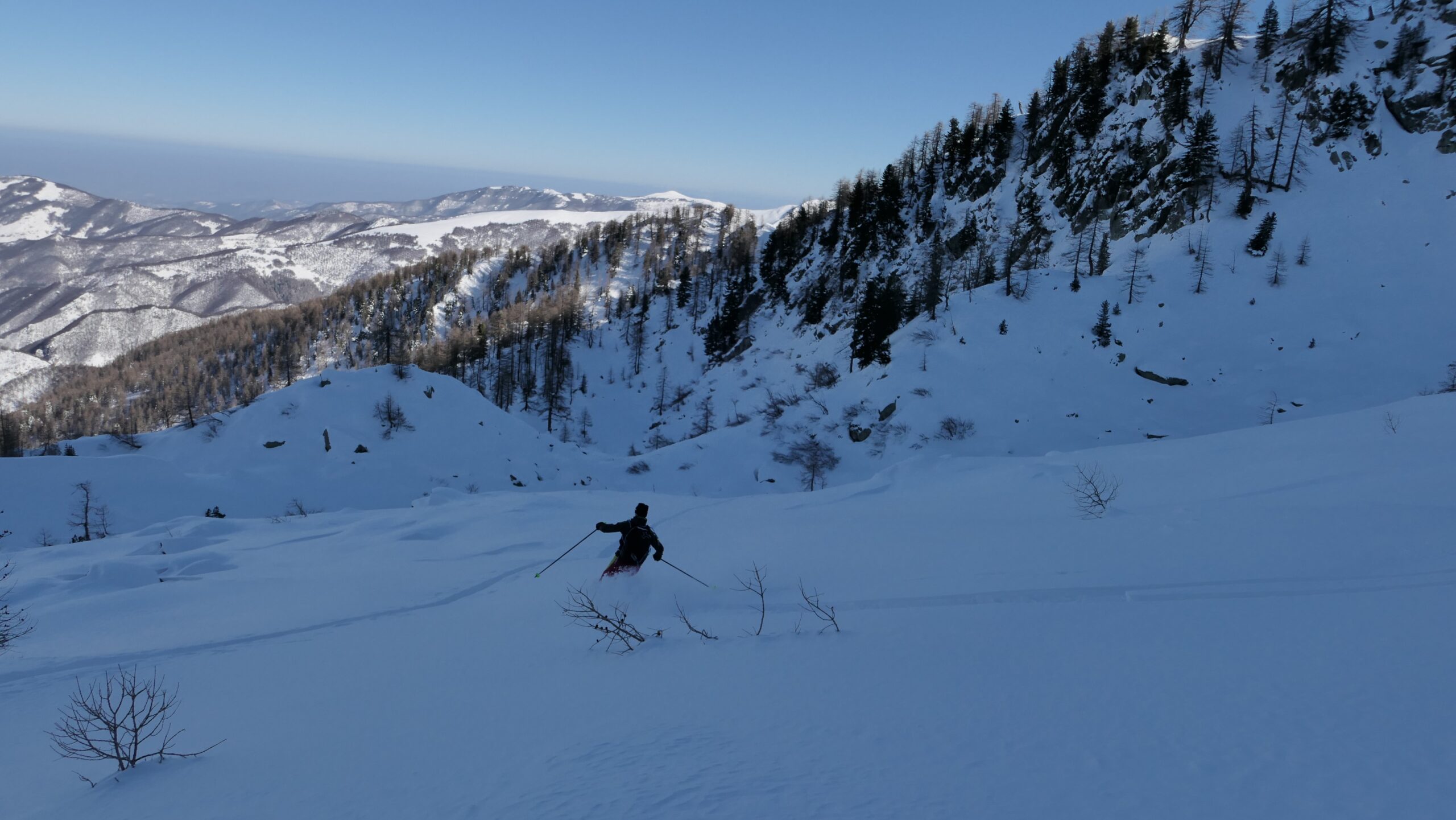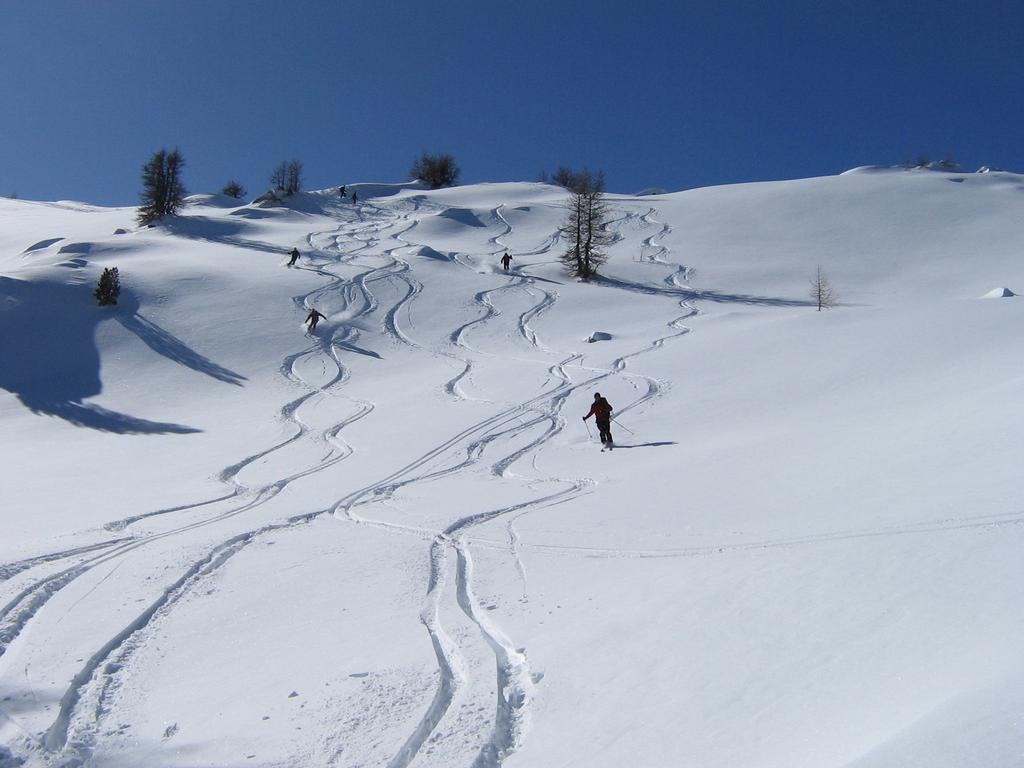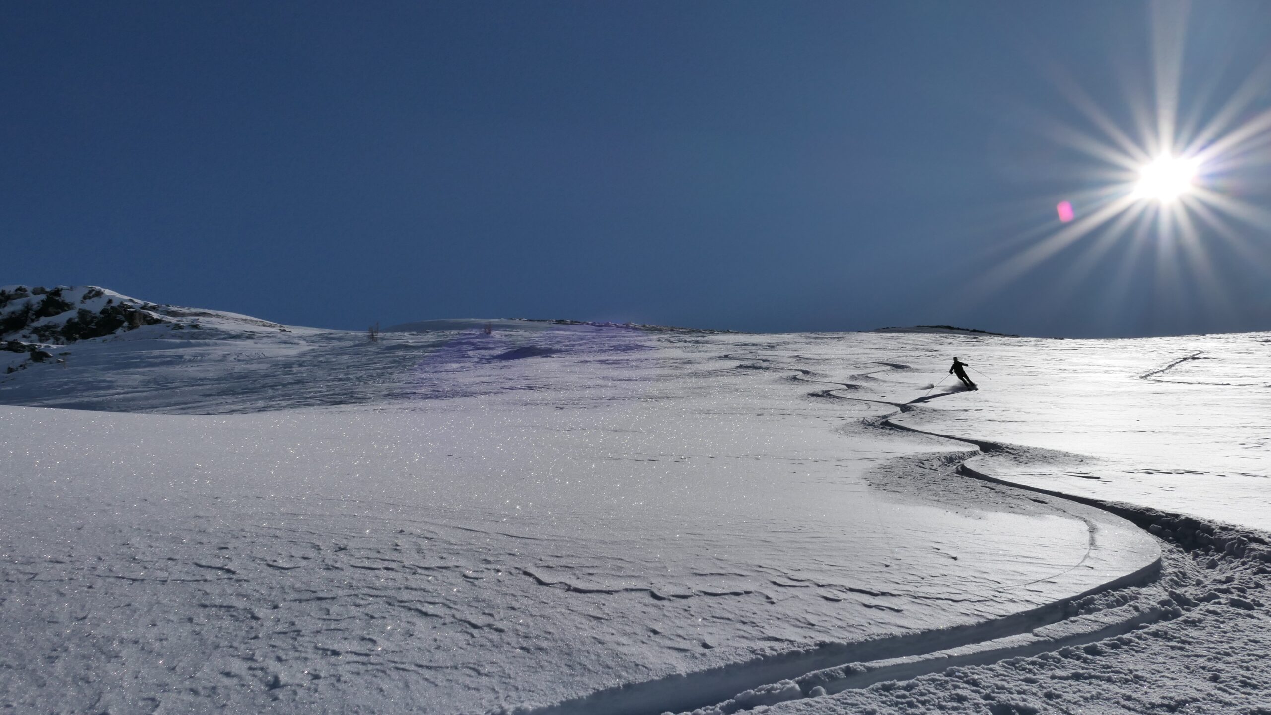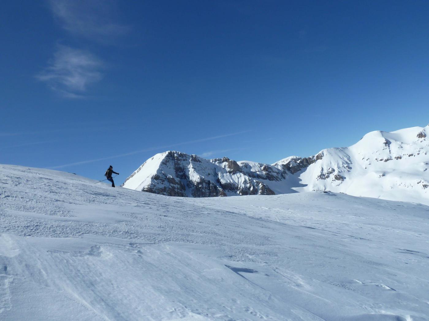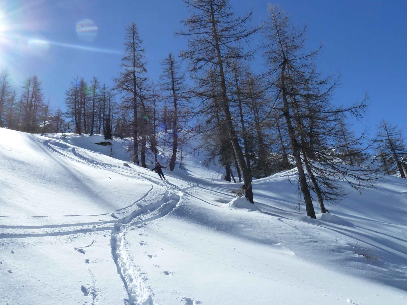 Con neve sicura dall’inizio della conca Revelli ci si può tenere più a destra senza passare dal bivacco e raggiungere più direttamente la punta.