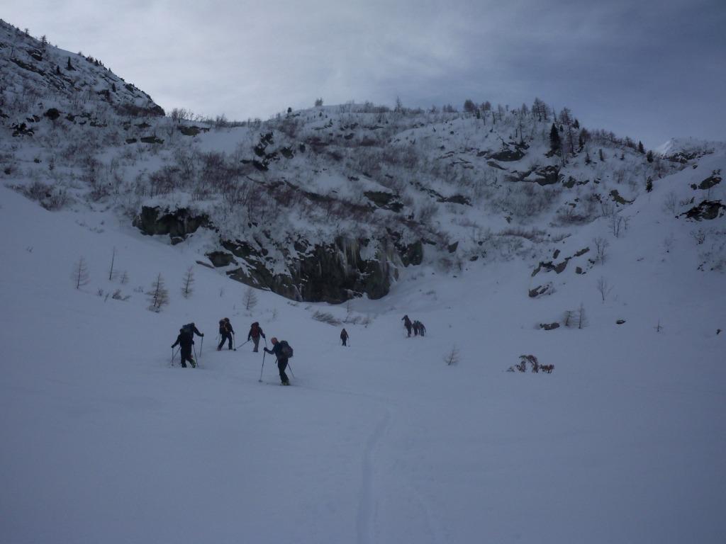 Si prosegue piegando a destra nel valloncello soprastante e poi sui pendii S che portano alla Punta 2369m (Disl. 189m – 30’ – 4h 30’).