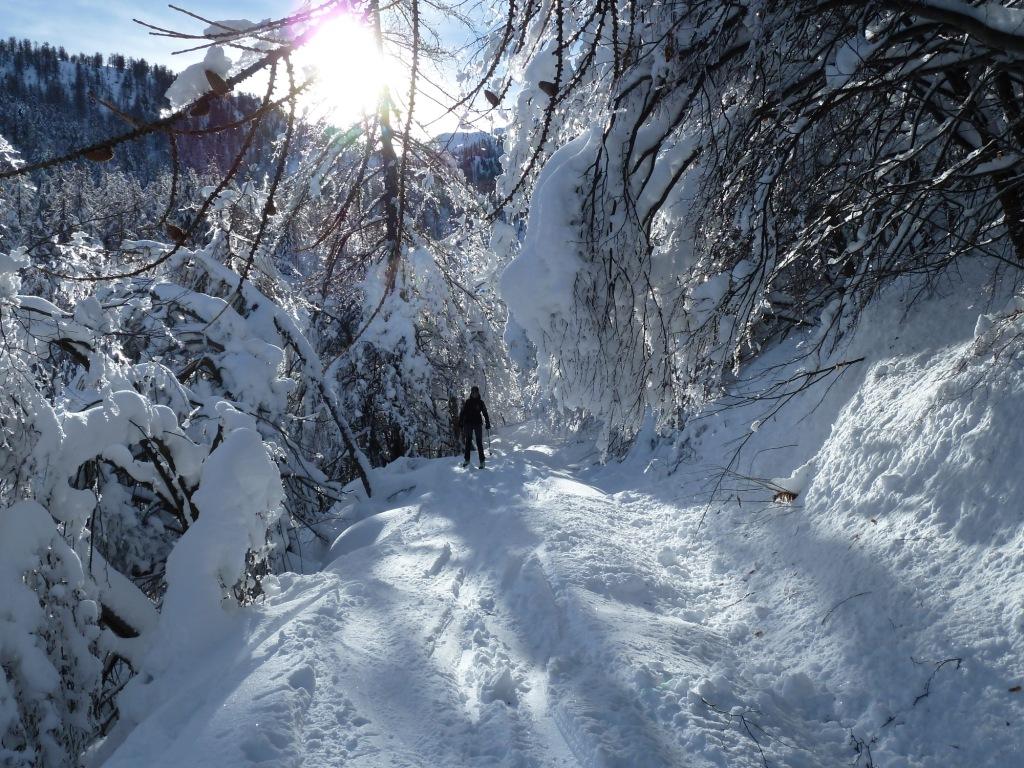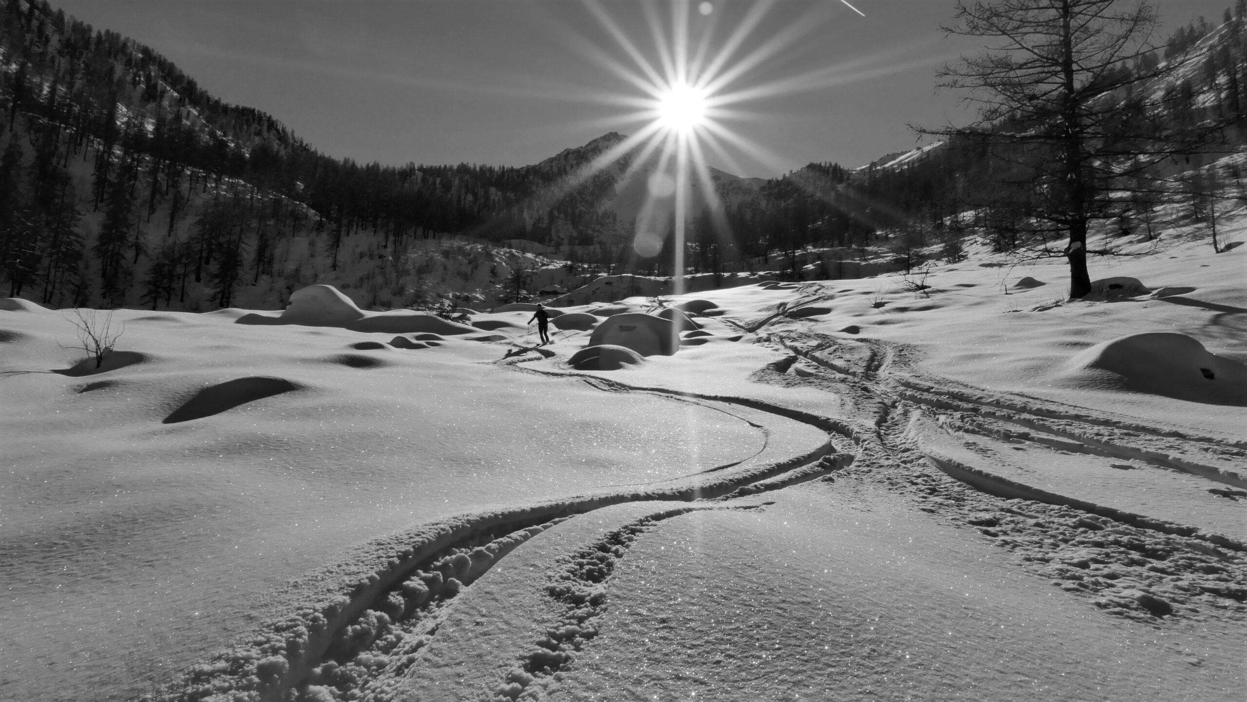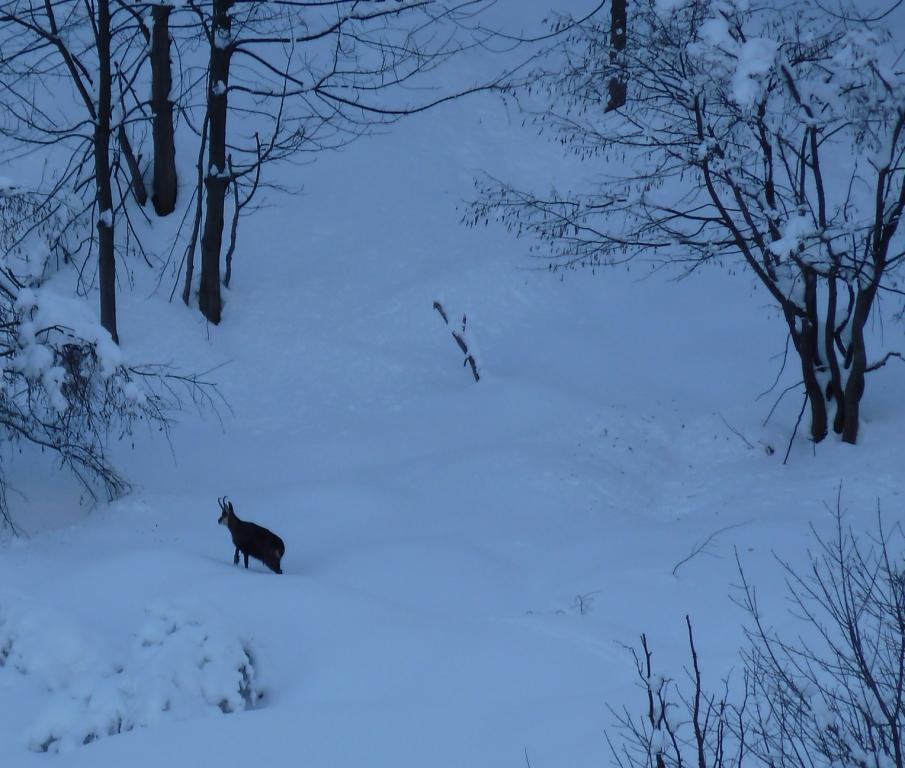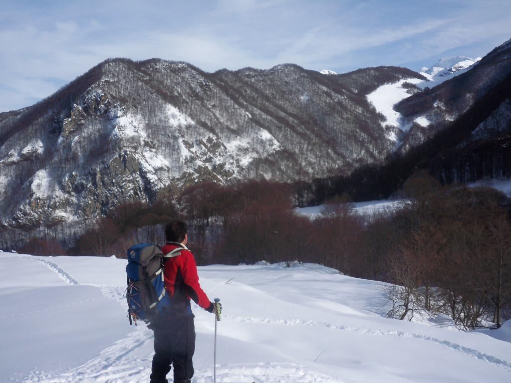 Si segue il bellissimo vallone con esposizione N fino al Piano Barone 1205m. Di qui per il sottostante pendio E o per una comoda stradina ci si riporta alla Stalla Rossa 1059m dove si ritrova l’itinerario di salita.