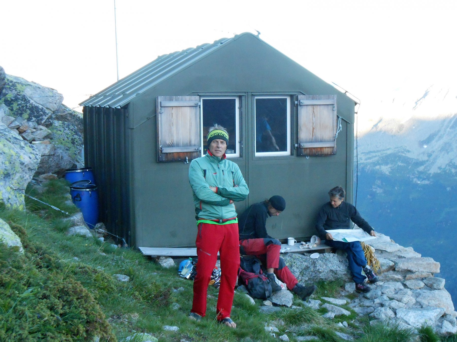 Partiamo dal bivacco alle 8 ca (il giorno prima abbiamo scalato la Hammerbruch)., perdiamo un po di tempo per via della neve che ci fa procedere cautamente sul pendio nevoso ripido con piccozza recuperata sotto il masso con segno rosso. Attacchiamo la via ma non ci convince, sembra bagnato, così scendiamo e ci spostiamo a sin sulla clock. Percorriamo 3 lunghezze super fino alla cengia erbosa e da lì riprendiamo la Villiger in L5 dato 6a+ un po’ strettino comunque bello ed estetico. Altri 6 tiri DOC e siamo in cima stanchi ma soddisfatti (due vie in 2 gg al salbit non è male). Usati friends fino al 3 BD doppie le misure medie, qualche micro per il 5° e l’11°, non avevamo il 6 per L7 ma ce la siamo cavata lo stesso. Le doppie, tranne un incastrata facilmente risolta, filano via lisce sugli anelloni resinati della via Jimmy, un po’ di cinema per recuperare le scarpe sul nevaio.